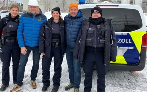 Foto: Hauptzollamt Augsburg: Einsatzleitung bestehend aus drei Personen der Finanzkontrolle Schwarzarbeit des Hauptzollamts Augsburg und zwei Beamten der Finanzpolizei aus Österreich
