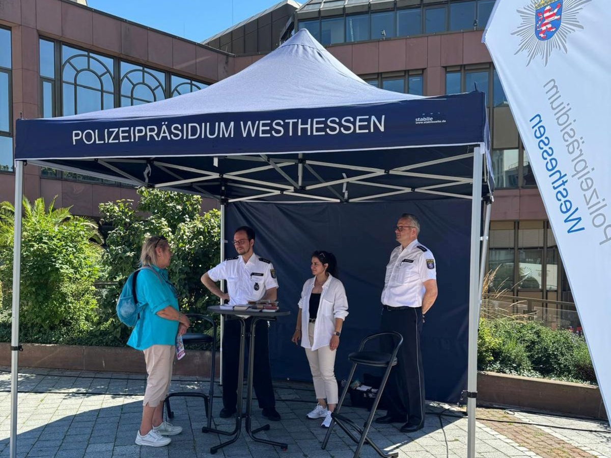 (da)Am Dienstag, den 25.06.2024 gab es auf dem Bad Homburger Wochenmarkt neben den üblichen Delikatessen auch hilfreiche Tipps der Polizei. Martin Scheiber, der Bad Homburger Schutzmann vor Ort, Jörg Schreiber, Leiter des Einbruchskommissariats der Regionalen Kriminalinspektion, sowie seine Mitarbeiterin Sumaiya Mahdi-Stolten, die für Trickdiebstähle aller Art und Straftaten zum Nachteil älterer Menschen zuständig ist, waren mit einem eigenen polizeilichen Wochenmarktstand vertreten; ihr Themenschwerpunkt an diesem Tag: Taschen- und Trickdiebstahl. Von 10 bis 16 Uhr informierten sie Interessierte vor dem Kurhaus in der Louisenstraße. Natürlich war der Andrang bei diesem Thema groß und viele Neugierige ließen sich Tipps geben, wie sie ihr Portemonnaie vor Langfingern schützen können. Und die Besucherinnen und Besucher kamen vorbereitet. Der Stand war bereits am Wochenende zuvor in der Lokalpresse angekündigt worden und so brachten einige Interessierte Fragezettel mit, zu denen die Kolleginnen und Kollegen Rede und Antwort stehen mussten. Hierbei ging es neben Trickdiebstahl aber auch um Einbruchspräventionsberatungen und ganz individuelle Anliegen. Die Polizei war mit Herzblut bei der Sache und so blieb keine Frage unbeantwortet.