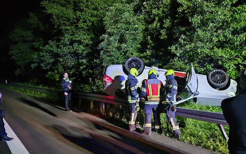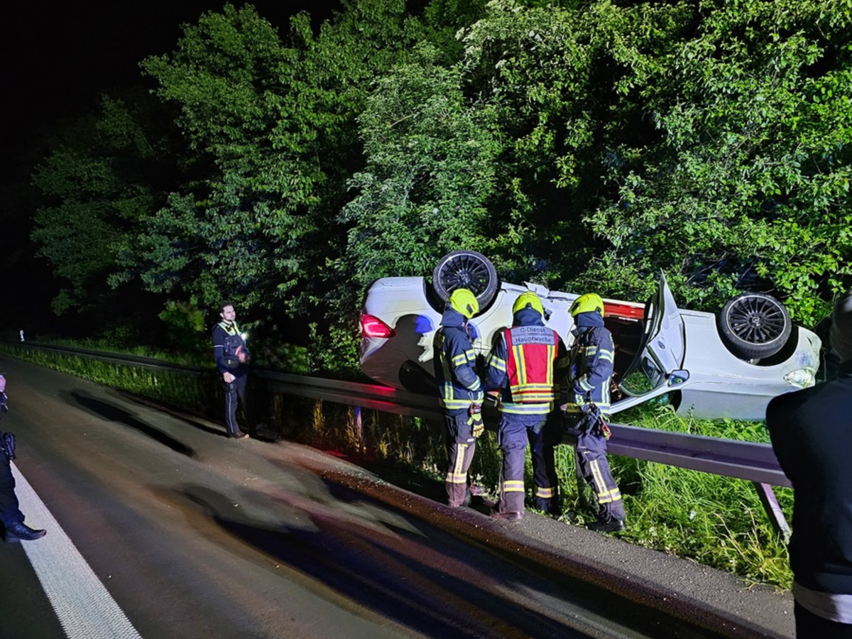 Zunächst ging die Kreisleitstelle in Kerpen aufgrund der Notrufmeldung von mehreren Insassen aus, die im PKW eingeschlossen sein könnten. Beim Eintreffen der ersten Kräfte bestätigte sich die Vermutung glücklicherweise nicht. Den PKW fanden sie auf dem Dach liegend im Grünstreifen vor. Alle drei Insassen hatten das Unfallwrack aber bereits verlassen und wurden durch den Notarzt gesichtet. Zwei blieben unverletzt. Der Rettungsdienst transportierte eine Frau in ein Krankenhaus.