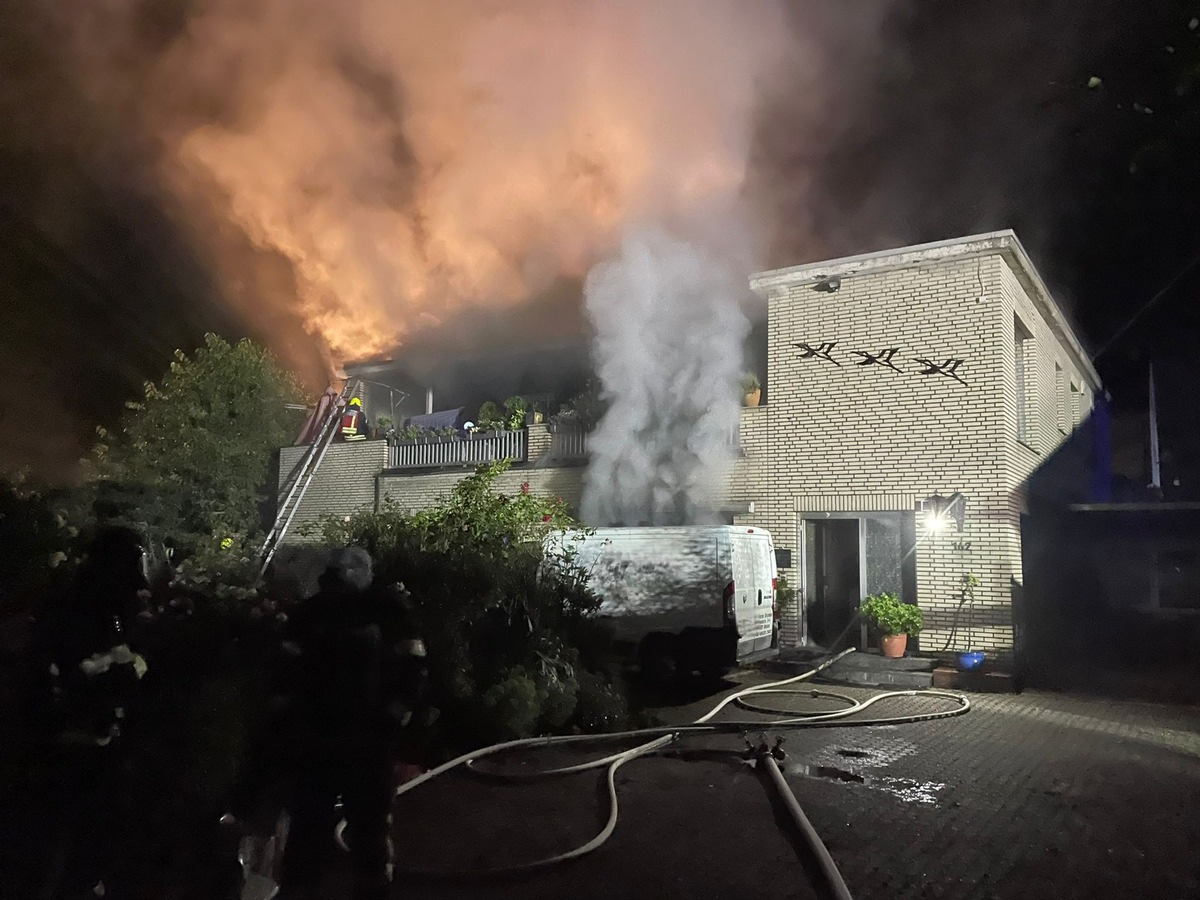 FW Bergheim: Feuerwehr rettet zwei Personen bei Gebäudebrand Werkstatt im Edgeschoss brannte aus - Zwei Personen kamen ins Krankenhaus