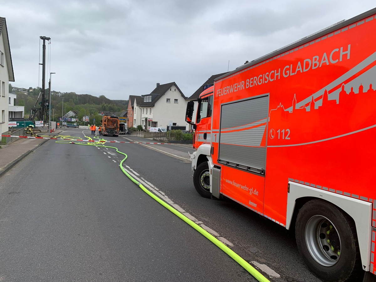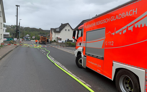 Bergisch Gladbach - Die Feuer- und Rettungsleitstelle des Rheinisch-Bergischen Kreises wurde am 11.04.2024 um 13:20 Uhr, per Notruf 112, über eine bei Bauarbeiten beschädigte Gasleitung im Stadtteil Schildgen von Bergisch Gladbach informiert. Die Leitstelle entsandte umgehend die Feuerwachen 1 und 2, den Löschzug 6 (Paffrath/ Hand), den Einsatzführungsdienst (B-Dienst), sowie zwei Rettungswagen, ein Notarzteinsatzfahrzeug (NEF), den Energieversorger Gas & Strom und die Polizei an die Einsatzstelle. Die Löschgruppe 5 (Schildgen), dessen Feuerwehrhaus direkt am Einsatzort ist, wurde aus einsatztaktischen Gründen nicht alarmiert, sondern die nächstgelegene Einheit des Löschzugs 6. Bei Eintreffen der ersten Feuerwehrkräfte konnte festgestellt werden, dass bei Baggerarbeiten am Straßenrand eine Gasleitung beschädigt wurde. Durch Messarbeiten konnte bestätigt werden, dass Gas aus diesem Leck austritt. Die Polizei sperrte die Altenberger-Dom-Straße zu beiden Seiten an den Kreuzungen Leverkusener Straße und Schlebuscher Straße. Da durch den Gasaustritt zu keiner Zeit die Sicherheit der Anwohnenden gefährdet wurde, konnten alle in Ihren Wohnungen verbleiben. Eine Gefahr für die Bevölkerung bestand nicht. Durch regelmäßige Überprüfungen des Gasaustritts und einem Angriffstrupp, unter schwerem Atemschutz mit einem C-Rohr, der in Bereitstellung stand, konnten die umfangreichen Tiefbau- und Reparaturarbeiten durch den Energieversorger sicher durchgeführt werden. Aufgrund der Lage konnten die Feuerwachen 1 und 2, sowie ein RTW und ein NEF im Einsatzverlauf aus dem Einsatz entlassen werden und stellten den Grundschutz für das Stadtgebiet sicher. Nach rund fünf Stunden war der Einsatz der Feuerwehr beendet. Die Feuerwehr Bergisch Gladbach war mit 9 Fahrzeugen und 30 Einsatzkräften vor Ort.(SiS)