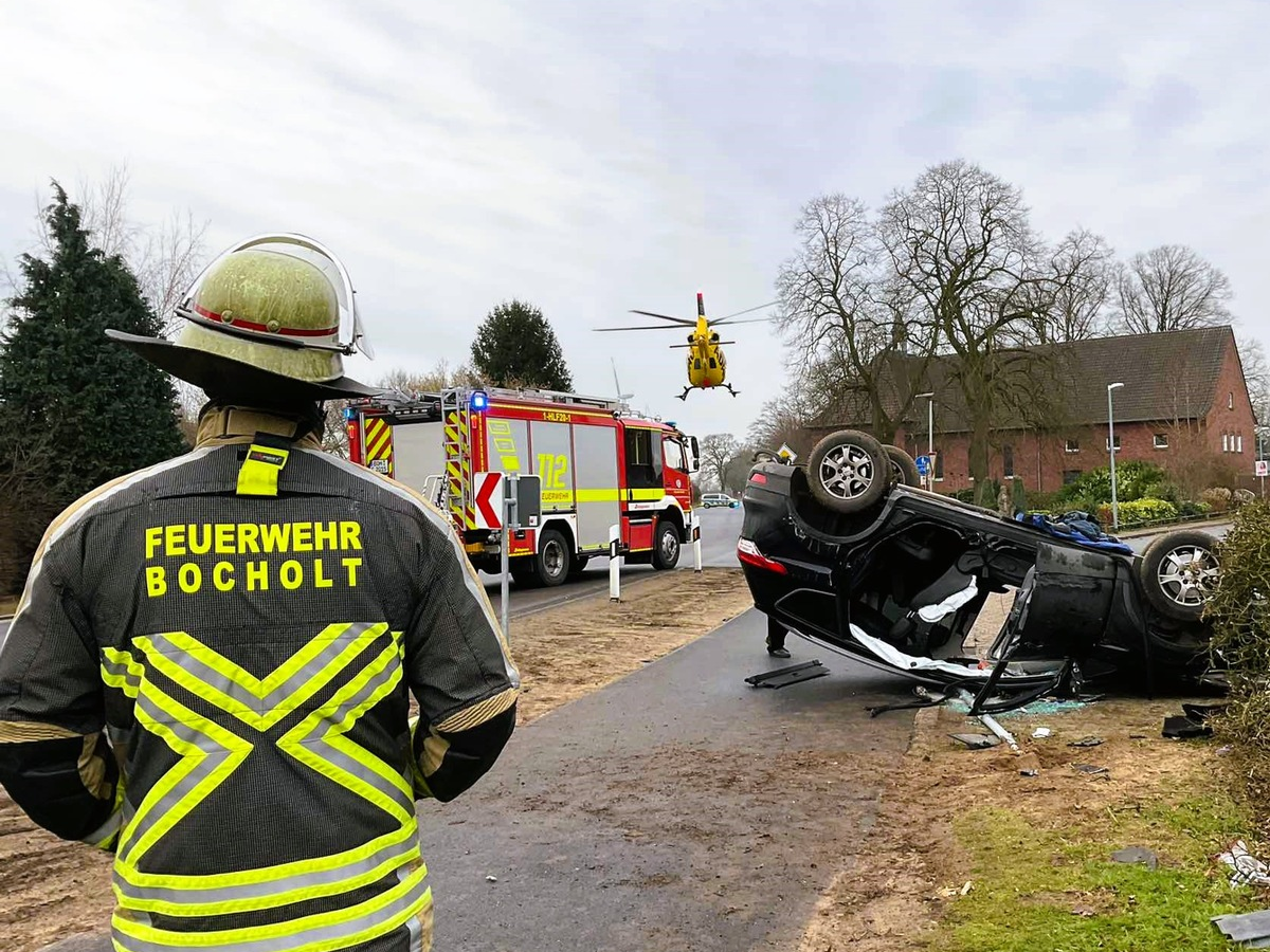 Feuerwehr und Rettungsdienst der Stadt Bocholt waren mit insgesamt fünf Fahrzeugen und 17 Einsatzkräften etwa eine Stunde im Einsatz. Die Ursache des Unfalls wird von der Polizei ermittelt.