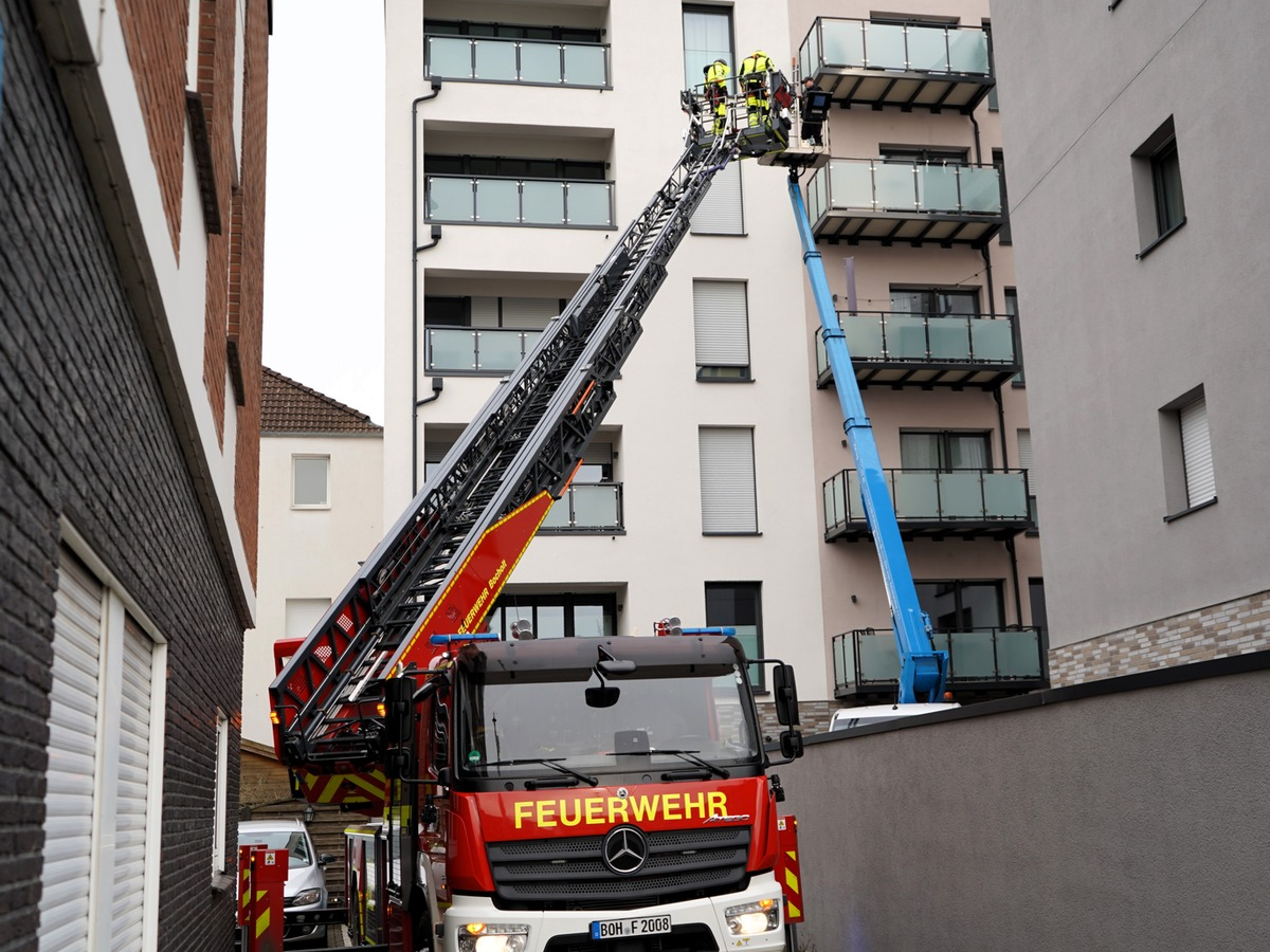 22.01.2025 - 18:53:17 | presseportal.deDank des schnellen Einsatzes von drei Höhenrettern der Feuerwehr, die mit Spezialgerät ausgerüstet waren, konnte die Rettung der beiden unverletzten Arbeiter zügig durchgeführt werden. Die Höhenretter sicherten die beiden Personen zunächst mittels der Drehleiter und brachten sie sicher zu Boden.
