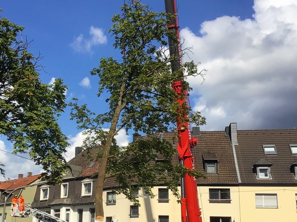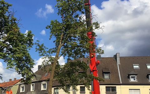 FW-BO: Feuerwehr beseitigt stark beschädigten Baum - Einsatz für den Feuerwehrkran