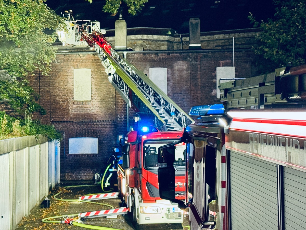 25.09.2024 - 08:02:14 | presseportal.deEin aufmerksamer Postbote bemerkte gegen 5 Uhr Flammen und Rauch aus einer denkmalgeschützen Lagerhalle zwischen der Hauptstraße und der Bonifatiusstraße in Bochum Langendreer und alarmierte die Feuerwehr. Beim Eintreffen der Einsatzkräfte der Hauptfeuerwache Werne schlugen an einer Stelle Flammen aus dem Dach einer rund 10 mal 30 Meter großen Lagerhalle. Personen waren zum Glück keine in der Halle, sodass umgehend mit den Löschmaßnahmen begonnen werden konnte. Über eine Drehleiter wurde der Brand mit einem Strahlrohr bekämpft und die Dachhaut mit einer Rettungssäge geöffnet. So konnten die Flammen gezielt abgelöscht und der Brand auf wenige Quadratmeter begrenzt werden. Parallelen zu den Löschmaßnahmen von Außen wurden auch die Innenräume der Halle kontrolliert, eine weitere Brandausbreitung konnte aber auch hier nicht festgestellt werden.