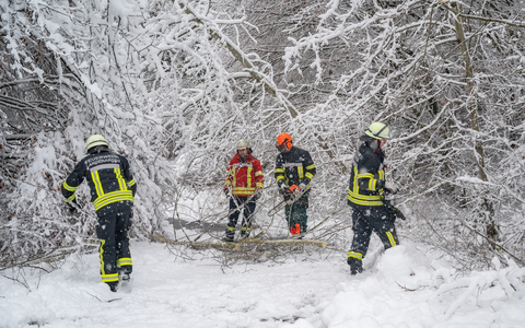 Bodenseekreis - Der seit Freitagabend (1.12.) einsetzende Schneefall im ganzen SĂŒddeutschen Raum hat in der Folge zu hunderten EinsĂ€tzen der Feuerwehren im Bodenseekreis gefĂŒhrt. Nach Angaben der Integrierten Leitstelle Bodensee-Oberschwaben kamen im Bodenseekreis bis zum Sonntagvormittag allein 320 gemeldete Alarme zusammen. Nicht dazu gezĂ€hlt wurden die EinsĂ€tze, die die Feuerwehren direkt erreichten und in Eigenregie abgearbeitet wurden, so dass man mindestens von einer Einsatzzahl von 400 ausgehen kann. Diese Anzahl wird auch durch weitere EinsĂ€tze in den kommenden Stunden noch steigen. Meistens handelte es sich um umgestĂŒrzte BĂ€ume ĂŒber Verkehrswegen, oder gefĂ€hrlich herabhĂ€ngende Ăste, die beseitigt werden mussten. Oft mussten die Feuerwehren ĂŒber Stunden unter widrigen Wetterbedingungen, die Verkehrswege sichern. Teilweise mussten aber auch StraĂen durch Waldgebiete gesperrt werden, da der Schneebruch fĂŒr die EinsatzkrĂ€fte ein zu hohes Risiko darstellte. Schwere VerkehrsunfĂ€lle ereigneten sich in diesem Zeitraum nicht. Im Bereich Markdorf und Bermatingen kam es am Samstag wiederholt zu kurzzeitigen StromausfĂ€llen, was auch hier zu EinsĂ€tzen der Feuerwehren fĂŒhrte, da AufzĂŒge in MehrfamilienhĂ€usern steckengeblieben waren. Da die starke Schneelast auf den BĂ€umen fortdauert und mit weiterem Schneebruch zu rechnen ist, warnt der Kreisfeuerwehrverband ausdrĂŒcklich davor die WĂ€lder zu betreten.