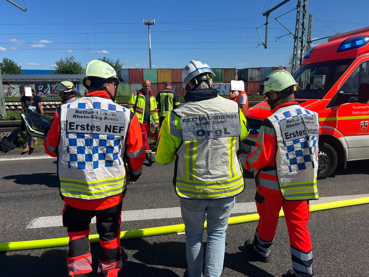 Im Einsatz befanden sich die Löscheinheit der Feuerwache Beuel, die Rüsteinheit der Feuerwache Innenstadt sowie der Rettungsdienst mit sechs Rettungswagen, einem Krankentransportwagen sowie vier Notärzten. Die Aufräumungsarbeiten an der Einsatzstelle dauerten bis 17:15 Uhr. Während des Einsatzes war die Richtungsfahrbahn Köln voll gesperrt.