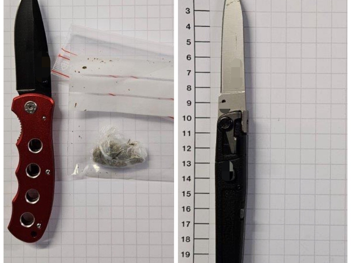 Eine knappe Stunde später, gegen 19 Uhr, passierte ein 32-Jähriger die Einsatzkräfte im Hauptbahnhof. Die Beamten nahmen einen intensiven Marihuana-Geruch wahr, welcher von dem albanischen Staatsangehörigen ausging. Auf Nachfrage händigte er ein Verschlusstütchen mit Cannabiskraut, sowie ein Einhandmesser aus. Dabei handelt es sich um ein Messer, welches mittels einer, an der Klinge angebrachten Öffnungshilfe einhändig geöffnet und je nach Verschlussmechanismus auch wieder einhändig geschlossen werden kann. Da der Mann sich nicht ausweisen konnte, brachten die Beamten in zur Bundespolizeiwache. Ein Fingerabdruckscan bestätigte schließlich die Identität des Wohnungslosen.