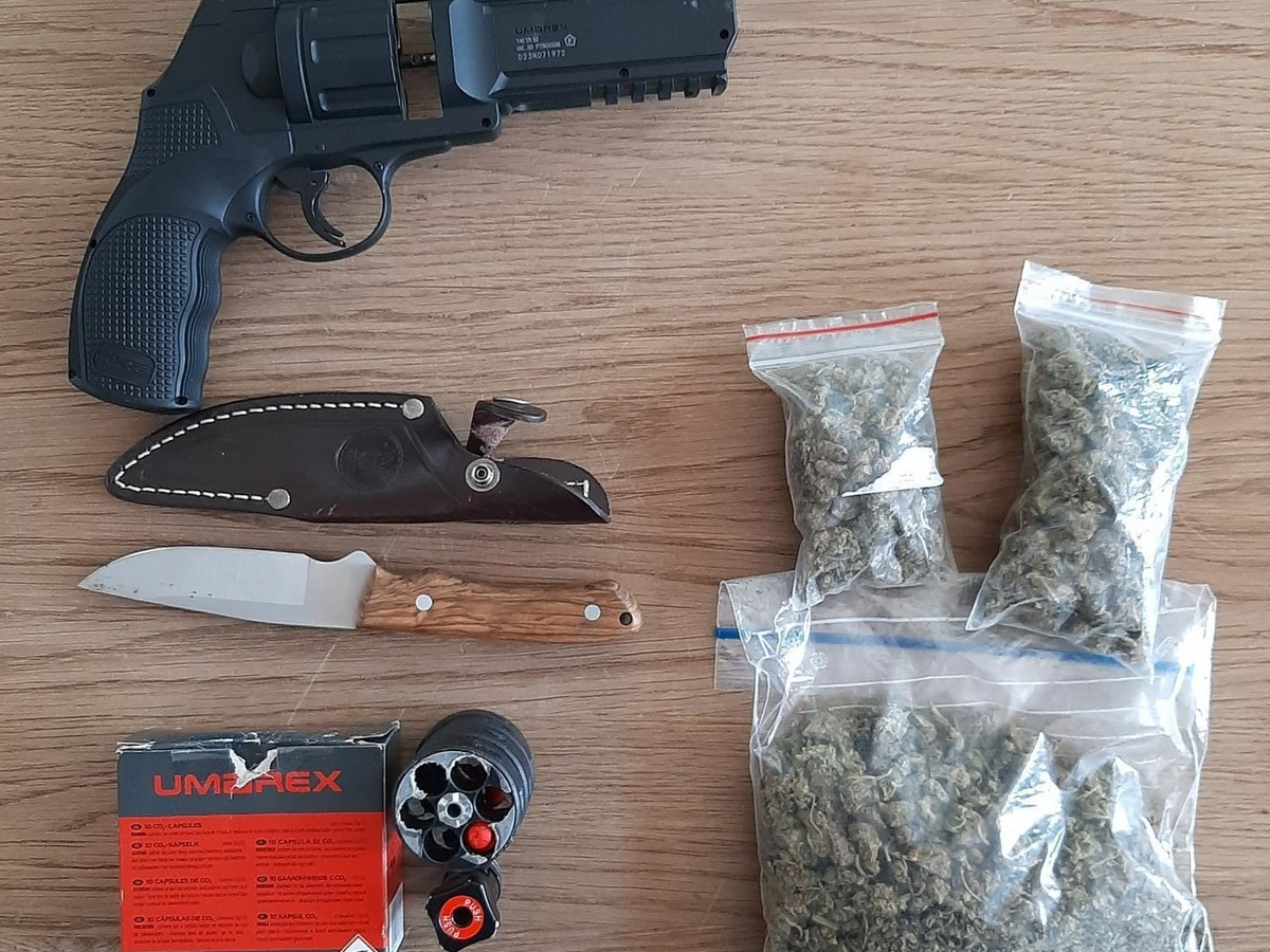 BPOLI MD: 42-JĂ€hriger fĂŒhrt Softairwaffe, Patronen, ein Messer und BetĂ€u-bungsmittel in einer nicht geringen Menge mit sich