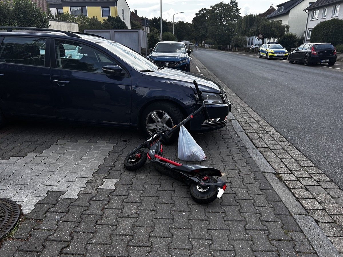 Auf der Scheier Straße ereignete sich gegen 07.58 Uhr im dortigen Kreisverkehr ein Unfall zwischen einem Pkw und E-Scooter. Beim Einfahren in den Kreisel übersah der 63jährige Pkw-Fahrer aus Bückeburg den bereits im Kreisverkehr fahrenden und vorfahrtsberechtigten E-Scooterfahrer. Der Fahrer des Scooters, ein 25jähriger Mann aus Meerbeck, stürzte von seinem Fahrzeug und zog sich leichte Verletzungen zu.