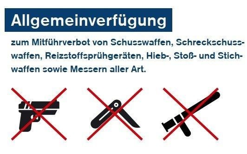 Einsatzkräfte der Bundespolizei überwachen die Einhaltung des Verbots. Bei Verstößen gegen die Verfügung können die Gegenstände sichergestellt und unabhängig von einem möglichen Straf- oder Ordnungswidrigkeitenverfahren nach dem Waffengesetz ein Zwangsgeld festgesetzt werden. Weitere Konsequenzen können ein Platzverweis oder ein Bahnhofsverbot (Hausverbot) sein. Gewaltdelikte auf Bahnhöfen und Bahnanlagen der Eisenbahnen des Bundes bewegen sich weiterhin auf hohem Niveau. Immer wieder werden dabei auch gefährliche Gegenstände eingesetzt. Die vorgesehene Einschränkung ist daher aus Sicht der Bundespolizei erforderlich. Weitere Regelungen bzw. Ausnahmen von dem Verbot ergeben sich aus der beigefügten Allgemeinverfügung. Diese ist der Pressemitteilung beigefügt und auf der Homepage der Bundespolizei unter www.bundespolizei.de veröffentlicht.