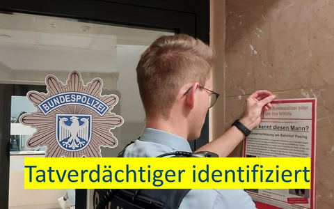 Bereits am Sonntagabend sowie am Montagmorgen gab es Zeugenhinweise, die Hinweise zum Gesuchten bzw. dessen Aufenthaltsort geben konnten. Am frühen Montagnachmittag (8. September) besuchten Beamtinnen und Beamte der Bundespolizei, nachdem der Tatverdächtige zweifelsfrei identifiziert war, den in Pasing wohnenden 35-Jährigen. Der gebürtige Münchner wurde zur Gefährderansprache sowie wegen Abklärung seines Verbleibes zur Bundespolizeiinspektion München in die Wache an der Denisstraße verbracht. Hier wird aktuell abgeklärt, wie weiter mit ihm verfahren wird. Bei seiner Festnahme konnten auch Beweismittel erlangt werden, die auf den 35-Jährigen als nunmehr dringend Tatverdächtigen hinweisen.