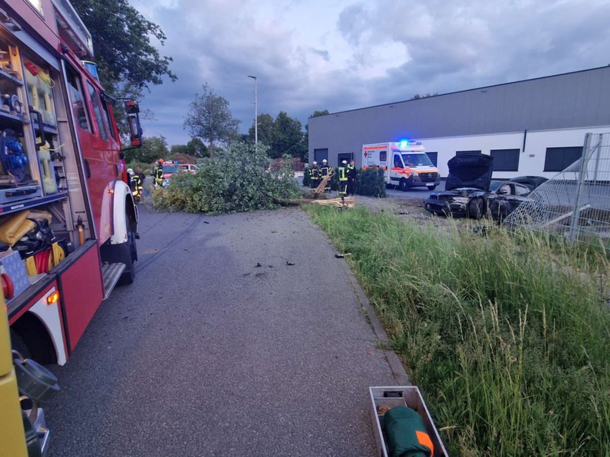 21.05.2025 - 09:01:02 | presseportal.deBei Eintreffen der Feuerwehr war keine Person im verunfallten Fahrzeug eingeklemmt. Verletzte Personen wurden durch den Rettungsdienst versorgt. Durch die Einsatzkräfte der Feuerwehr wurde der Brandschutz sichergestellt, das betroffene Fahrzeug stromlos geschaltet und auslaufende Betriebsstoffe gebunden. Außerdem musste ein durch den Unfall umgestürzter Baum entfernt werden.