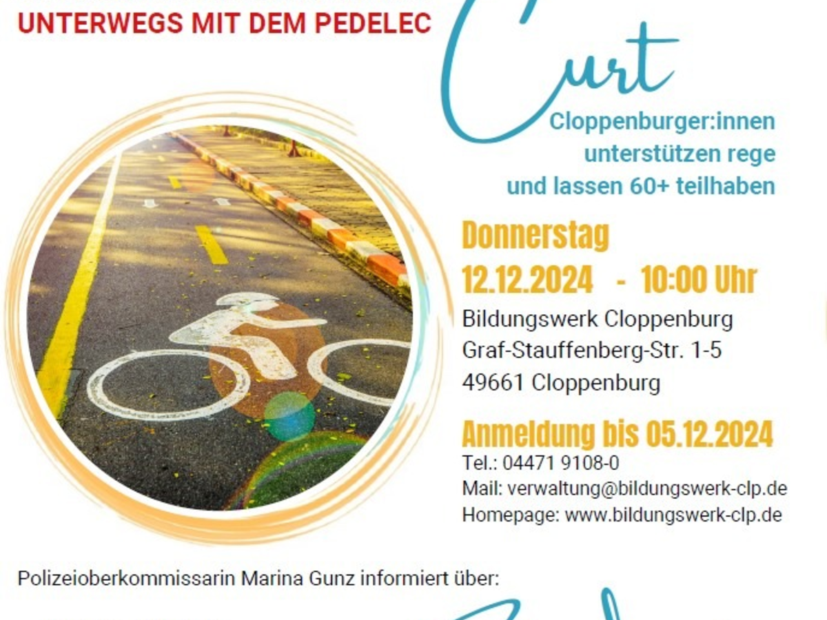 Einzelmeldung für den Bereich Cloppenburg - Sicher unterwegs mit dem Pedelec - Präventionsveranstaltungen am 18.11.2024 und 12.12.2024