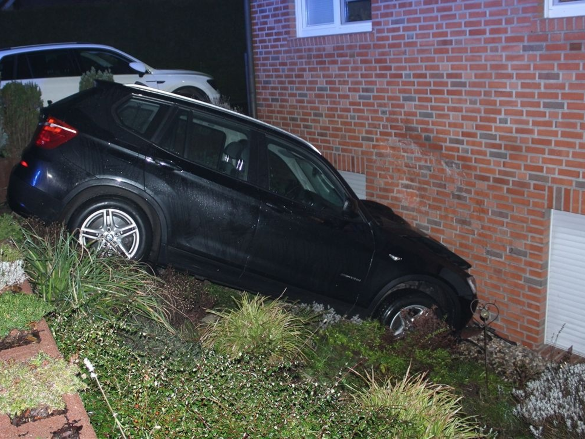 Olfen, Albert-Schweitzer-Straße/ Auto prallt gegen Hauswand
