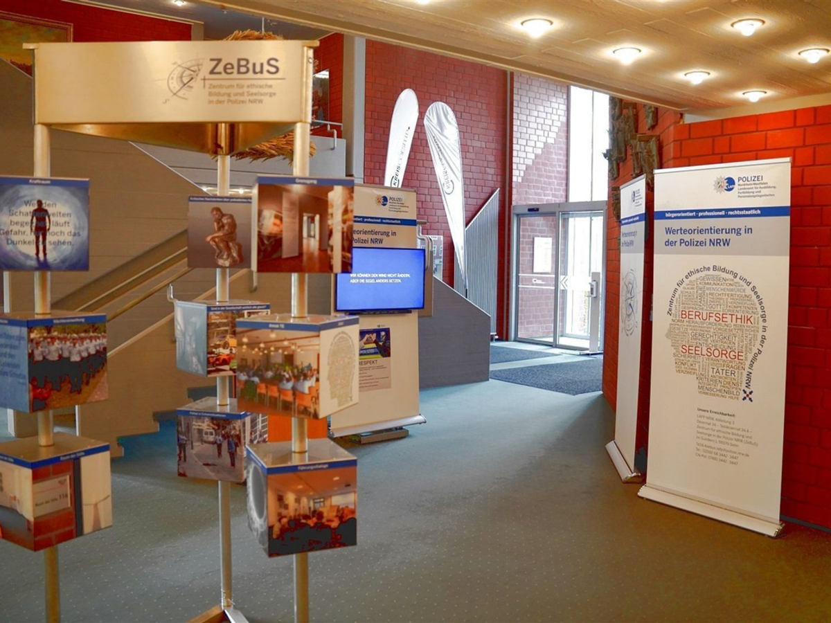 Neben diesen Aspekten, mit denen sich die Öffentlichkeit auseinandersetzen kann, bietet die Ausstellungen den Mitarbeitenden der Polizei Nordrhein-Westfalen die Gelegenheit, sich mit dem Thema Werte zu befassen. "Polizistinnen und Polizisten üben das Gewaltmonopol des Staates aus. Das ist eine große Verantwortung. Werte bestimmen unsere Entscheidungen. Deshalb ist es wichtig, sich immer wieder auf die Werte unserer Verfassung zu beziehen", so Thomas Eder. Eine bürgerorientierte, professionelle und rechtsstaatliche Polizei sei der Anspruch aller.