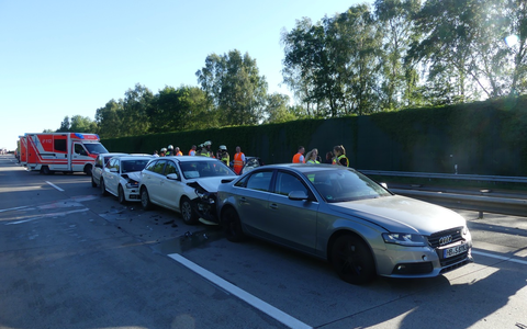 Auffahrunfall mit fünf Fahrzeugen auf der BAB - sechs Leichtverletzte (Lichtbild im Anhang)