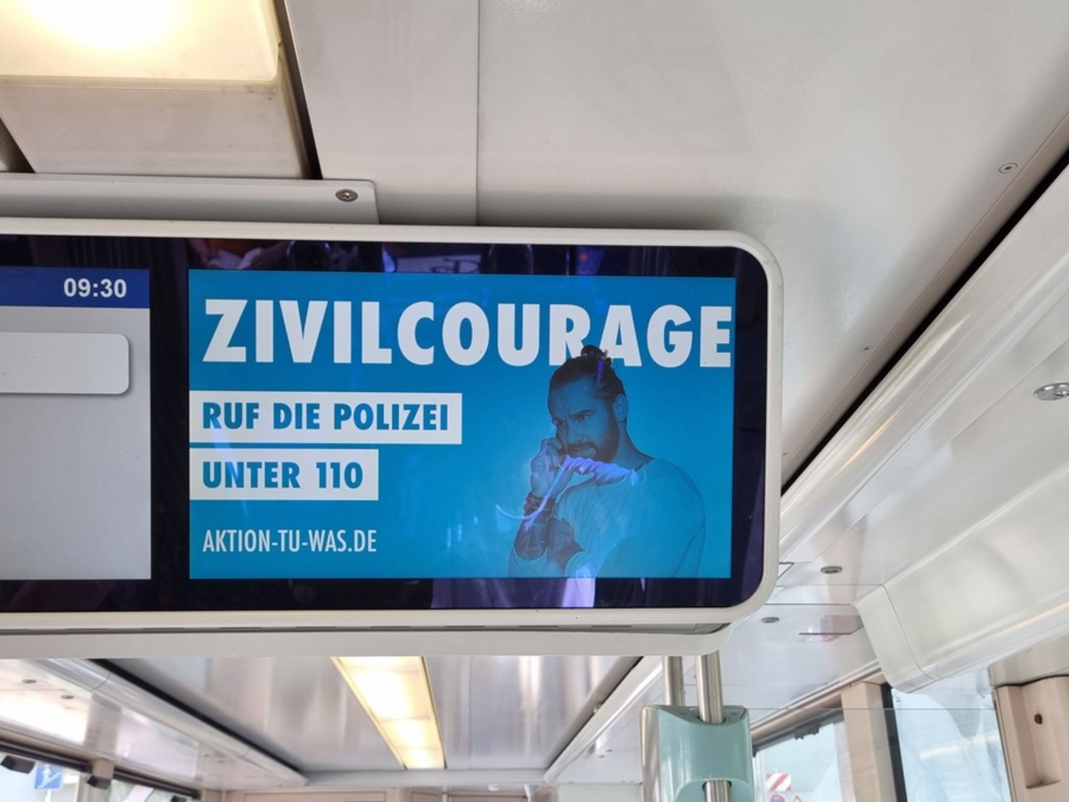 Darmstadt: Sichere Innenstadt/ AKTION-TU-WAS - Initiative der Polizei für mehr Zivilcourage - Infotainment in Bussen und Bahnen der HEAG Mobilo