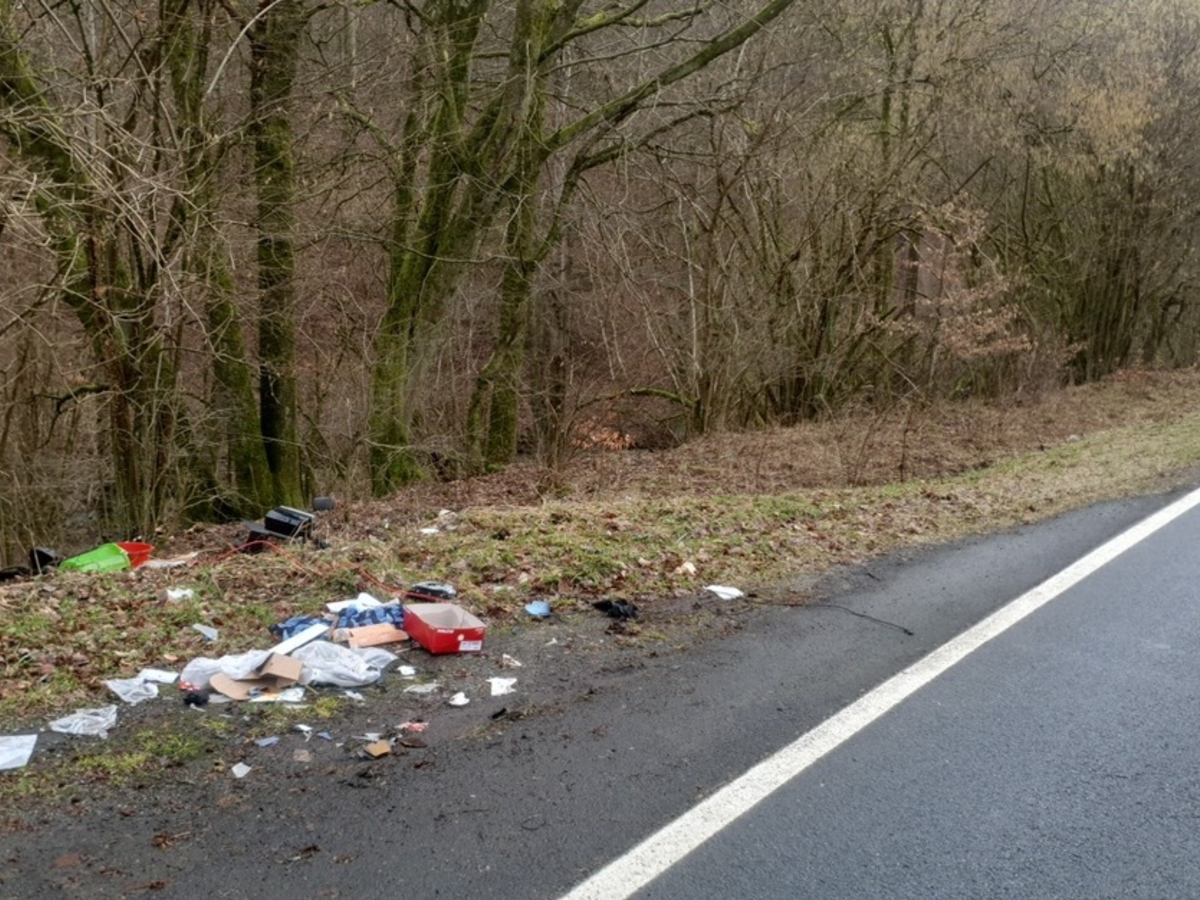 Unmittelbar an der Landstraße L3362 zwischen dem Dillenburger Ortsteil Nanzenbach und der Zufahrt zum Sportplatz Eiershausen entdeckten Verkehrsteilnehmer am Montag (12.02.2024) illegal entsorgten Müll, der auch gefährliche Gegenstände enthielt. Insgesamt 15 Altreifen, Fahrzeugteile, Elektrogeräte, pyrotechnischen Gegenständen und diverser Restmüll lag im Grünstreifen der Fahrbahn sowie im angrenzenden Wald. Der oder die Umweltsünder müssen ihren Müll dort zwischen 13.00 Uhr am Freitag (09.02.24) und 05.45 Uhr am Montag (12.02.24) entsorgt haben. Die Ordnungsbehörde und Polizei suchen Zeugen und fragen: Wer hat den oder die Täter beim Abladen an der Landstraße beobachtet? Wem ist ein entsprechendes Fahrzeug mit Anhänger, Sprinter oder Lkw im genannten Zeitraum aufgefallen? Hinweise erbittet die Polizeistation Dillenburg unter Tel.: (02771) 907-0.(Y.N;StadtDillenburg)
