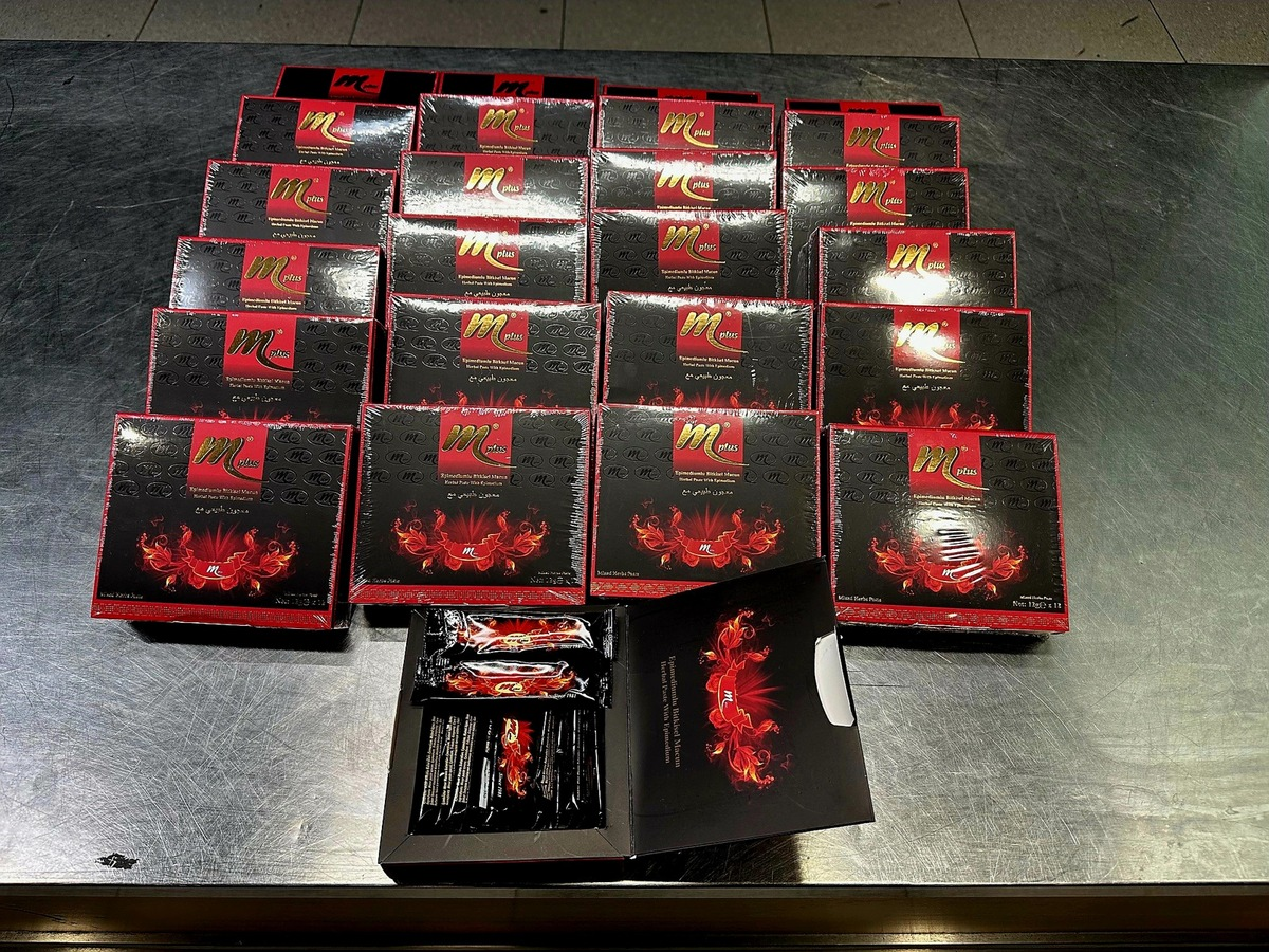 14.02.2025 - 12:07:39 | presseportal.deDie Beamten baten den 36-jährigen Mann zur Kontrolle. In seinem Koffer fanden die Zöllner 25 Pakete mit einer zähflüssigen Substanz, die in Sticks verpackt war. Der Reisende gab an, es handle sich um eine Kräuterpaste, deren Einnahme unter anderem die Potenz fördern solle. Durch die Beschreibung des Produkts durch den Reisenden kam bei den Zöllnern der Verdacht auf, dass Verbote und Beschränkungen der Einfuhr der Paste entgegenstehen könnten.