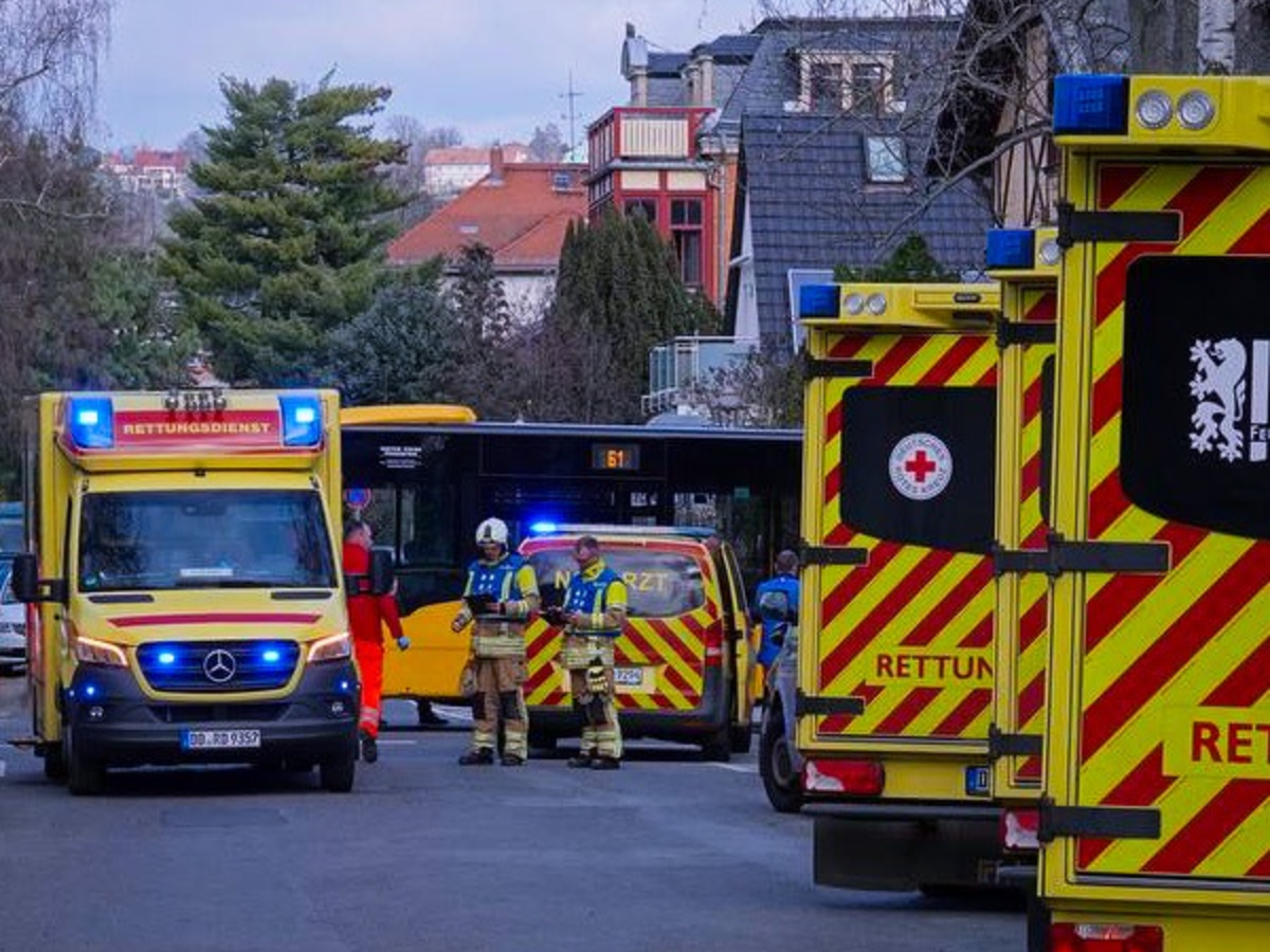 Aus noch zu ermittelnder Ursache ist es heute Mittag zu einem Verkehrsunfall zwischen einem Bus der Linie 61 und einem PKW VW gekommen. Der Busfahrer hatte in diesem Zusammenhang eine Gefahrenbremsung eingeleitet, woraufhin mehrere FahrgĂ€ste im Bus stĂŒrzten. Drei weibliche Patientinnen (73, 87) sowie eine 47-jĂ€hrige Mutter und ihr 13-jĂ€hriger Sohn wurden dabei zum Teil schwer verletzt und mit Rettungswagen in KrankenhĂ€user transportiert. Sechs weitere Patienten trugen leichte Verletzungen davon und wurden vor Ort ambulant versorgt. Um die groĂe Zahl an Verletzten zu versorgen, wurde nach dem Alarmstichwort MANV10 alarmiert. Damit werden zusĂ€tzliche Rettungsmittel und FĂŒhrungsdienste zur Einsatzstelle entsandt, um die Patienten schnellstmöglich einer klinischen Versorgung zuzufĂŒhren. Im Einsatz waren neben dem B-Dienst und dem Organisatorischen Leiter Rettungsdienst, ein Notarzteinsatzfahrzeug sowie ein Rettungswagen der Feuer- und Rettungswache Altstadt, drei Rettungswagen der Rettungswache Johannstadt sowie zwei Rettungswagen der Feuer- und Rettungswache Striesen. Die Polizei hat die Ermittlungen zur KlĂ€rung des Unfallhergangs aufgenommen. FĂŒr die Dauer der EinsatzmaĂnahmen musste der Bereich gesperrt werden.