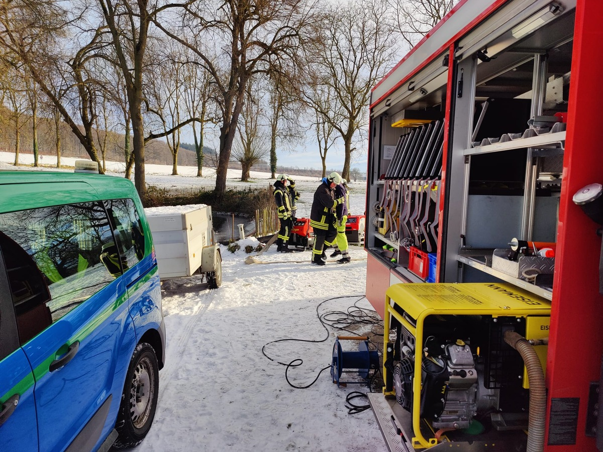 FW Ense: Teich- Überlauf defekt / Feuerwehr 4 Stunden im Einsatz
