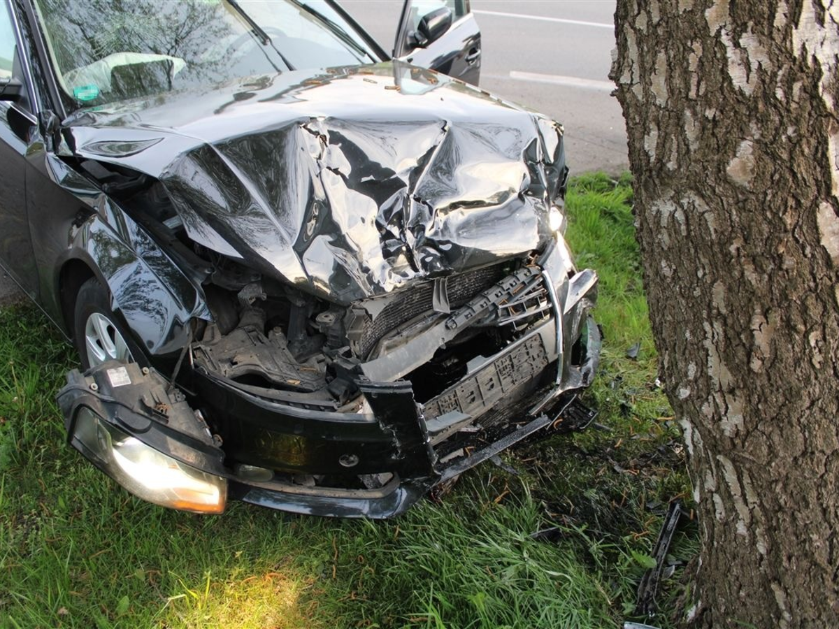 Pkw kollidiert nach Kreuzungsunfall mit Baum
