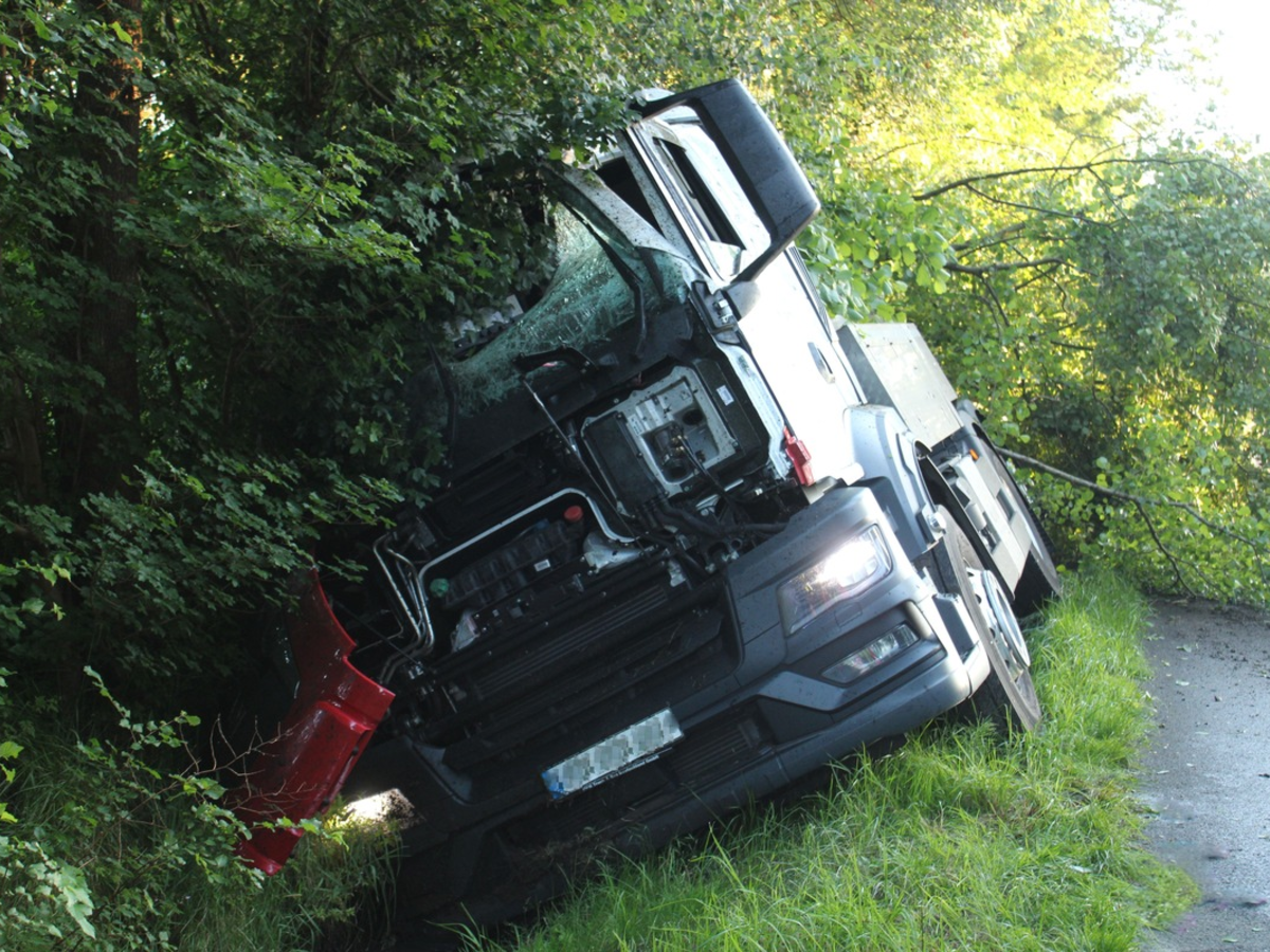 10.06.2024 - 11:51:07 | presseportal.deEin 25-jähriger Fahrer aus dem Kreis Paderborn war gegen 5.30 Uhr mit seinem Lastkraftwagen auf der Bremer Straße (239) aus Alt-Espelkamp kommend in Richtung Lübbecke unterwegs. Aus noch ungeklärter Ursache kam der mit 11.000 Litern Milch beladene Lkw kurz vor der Osnabrücker Straße nach rechts von der Fahrbahn ab. In der Folge geriet der tonnenschwere Milchwagen in den Straßengraben und kollidierte zuvor mit einem Leitpfosten sowie mehreren Bäumen, bevor er zum Stillstand kam und auf die rechte Seite kippte.