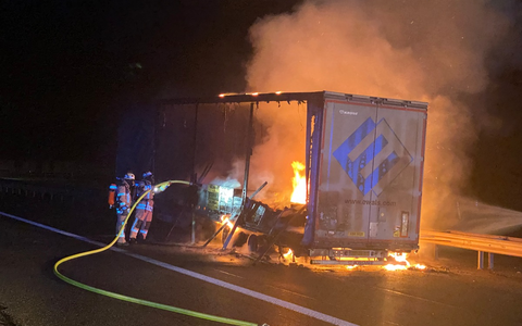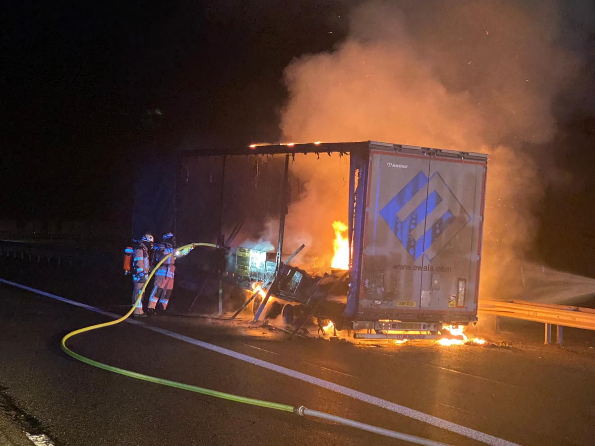 FW Frankenthal: Vollbrand eines Sattelaufliegers auf der Autobahn 61