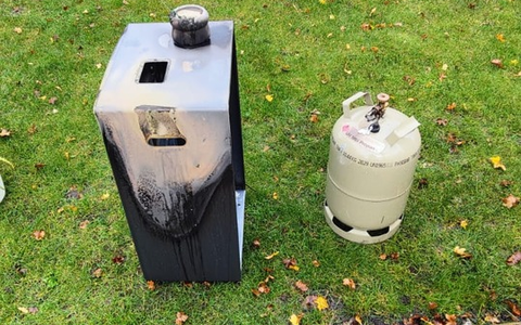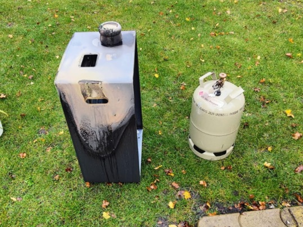 Beim Eintreffen der ersten Einsatzkräfte bestätigte sich diese Lage. Der Schlauch und der Druckminderer zwischen Gasflasche und Heizgerät waren bereits weggeschmolzen, das Feuer befand sich direkt an der Gasflasche. Bei der Gasflasche handelte es sich um eine handelsübliche 11kg Propangasflasche.