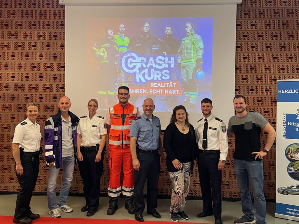 Mitarbeiterinnen und Mitarbeiter der Notfallseelsorge des Kreises Bergstraße, die Schulpsychologie, Pflegekräfte sowie Einsatzkräfte von Feuerwehr, Polizei und Rettungsdienst berichteten hautnah und eindrucksvoll von eigens erlebten Fällen, um Schülerinnen und Schüler für die Gefahren im Straßenverkehr zu sensibilisieren. Thematisiert wurden Unaufmerksamkeit, Trunkenheit am Steuer, die Ablenkung durch Mobiltelefone und auch Drogenkonsum in Verbindung mit dem Führen eines Kraftfahrzeuges. Moderiert und geleitet wurde die Veranstaltung von Kriminaloberkommissar Johannes Hofmann (Jugendkoordinator der Polizeidirektion Bergstraße) mit tatkräftiger Unterstützung aller Beteiligten.