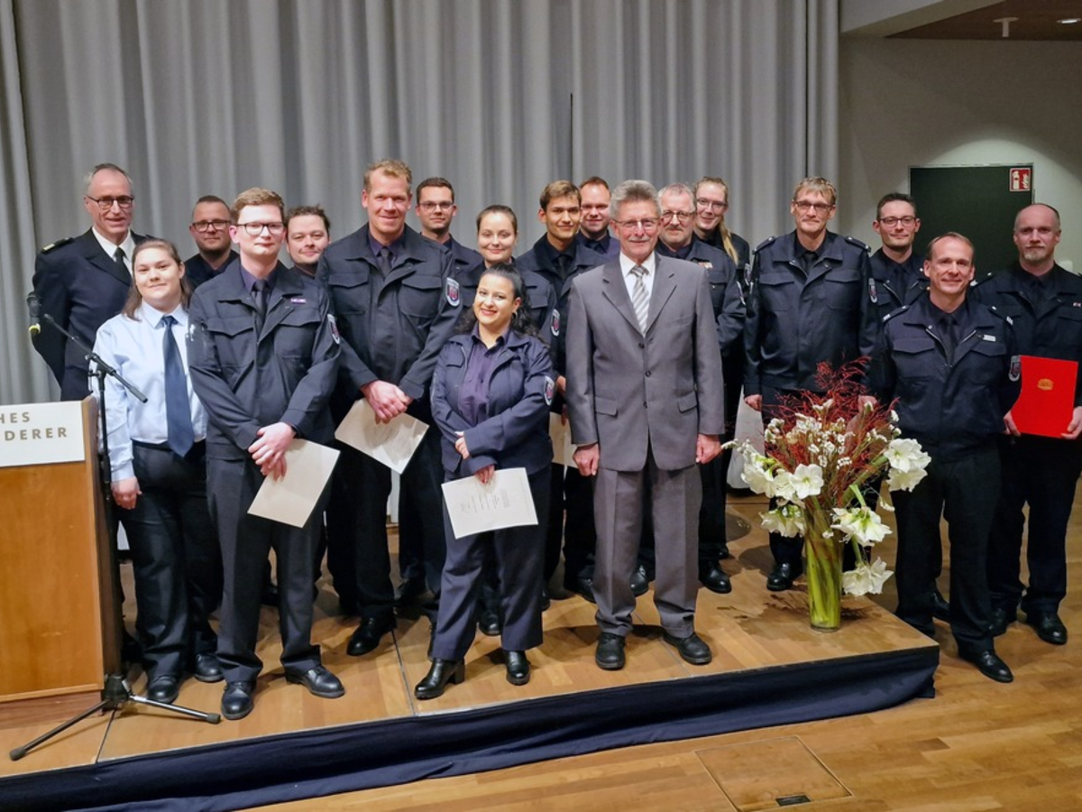 Befördert wurden sechs Einsatzkräfte der Freiwilligen Feuerwehr Bremerhaven-Lehe, sieben Einsatzkräfte der Freiwilligen Feuerwehr Bremerhaven-Weddewarden und elf Einsatzkräfte der der Freiwilligen Feuerwehr Bremerhaven-Wulsdorf. Krankheitsbedingt konnte nicht alle Einsatzkräfte an der Zeremonie teilnehmen.