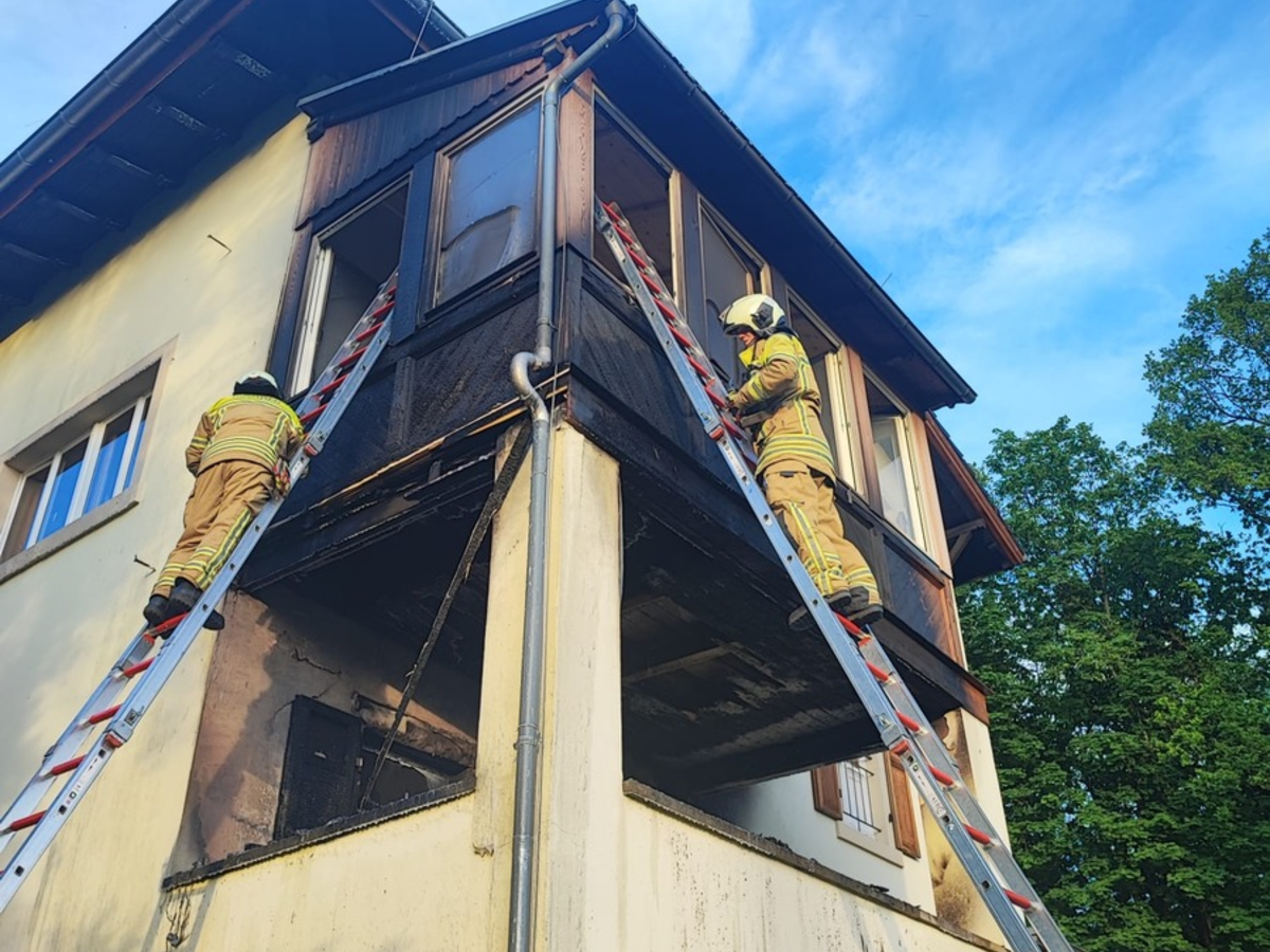Beim Hantieren mit einer Gasflasche auf dem Balkon im Erdgeschoss eines Mehrfamiliengebäudes kam es zu einer Verpuffung. In der Folge geriet der Balkon in Brand und die Flammen breiteten sich auf den darüber liegenden Holzbalkon aus. Zwei Personen wurden durch die Einsatzkräfte vom Grundstück gerettet und dem Rettungsdienst übergeben. Sie wurden ambulant versorgt und blieben augenscheinlich unverletzt. Drei Trupps unter Atemschutz nahmen von außen mit zwei Strahlrohren die Brandbekämpfung auf und konnten ein Ausbreiten der Flammen auf den Dachstuhl verhindern. Um an verborgene Glutnester zu gelangen mussten Teile der Holzverkleidung des oberen Balkons entfernt werden. Im Einsatz waren 57 Einsatzkräfte der Feuer- und Rettungswachen Striesen und Übigau, der Rettungswache Gönnsdorf, der B-Dienst, der U-Dienst sowie die Stadtteilfeuerwehren Pappritz, Pillnitz und Weißig.