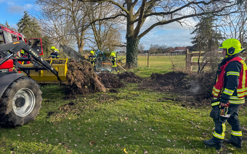 Nach kurzer Suche konnte ein brennender Laubhaufen auf einem GrundstĂŒck ausfindig gemacht werden. Der EigentĂŒmer hatte bereits erste LöschmaĂnahmen unternommen. Die Feuerwehr fĂŒhrte daraufhin Nachlöscharbeiten mit einem C-Strahlrohr durch und kontrollierte den Bereich anschlieĂend mit einer WĂ€rmebildkamera, um mögliche Glutnester auszuschlieĂen. UnterstĂŒtzt wurden die MaĂnahmen durch den EigentĂŒmer, der das Brandgut mit einem Trecker auseinanderzog und so weitere Glutnester freilegte. Der Brand konnte somit schnell unter Kontrolle gebracht und der Einsatz fĂŒr die Feuerwehr nach knapp 30 Minuten beendet werden.