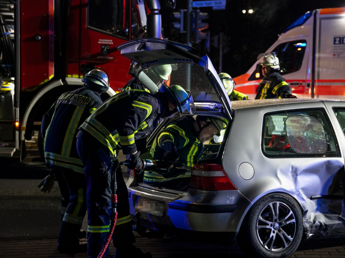 Auf der zentralen Kreuzung nahe des zentralen Stummplatzes stießen im aufkommenden Berufsverkehr ein silberner Volkswagen Golf und ein blauer Dacia Logan miteinander zusammen. Die beiden 57 und 56 Jahre alten Fahrerinnen des VW und des Dacia erlitten durch den Unfall nur leichte Verletzungen und konnten die Autowracks sogar noch selbstständig verlassen. Die 60-jährige Beifahrerin im Golf hingegen wurde weitaus schwerer verletzt. Sie wurde zwar nicht eingeklemmt, konnte das Wrack jedoch aufgrund ihrer Verletzungen und der Unfallschäden nicht mehr aus eigener Kraft verlassen.