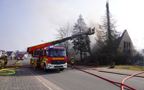 Da zunächst nicht ausgeschlossen werden konnte, dass sich noch Personen im Gebäude befinden, leiteten die Einsatzkräfte umgehend eine Menschenrettung ein. Aufgrund der besonderen Situation im Inneren des Hauses - eine große Menge an gelagerten Gegenständen erschwerte die Zugänglichkeit erheblich - musste der Innenangriff jedoch aus Sicherheitsgründen zunächst abgebrochen werden.