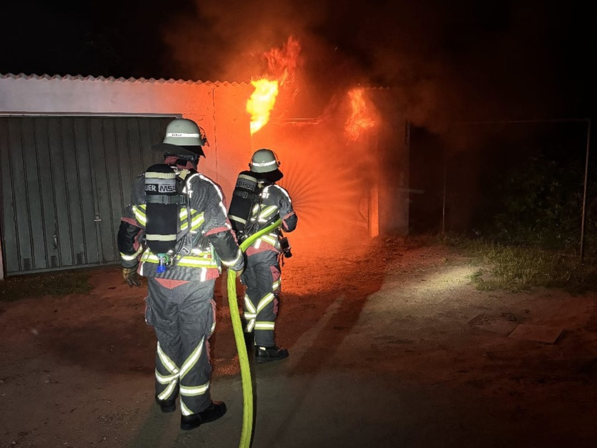 13.07.2024 - 10:55:51 | presseportal.deAls die Einsatzkräfte der Feuerwehr wenige Augenblicke später an der Einsatzstelle eintrafen, bestätigte sich die gemeldete Lage. Eine, im rückwärtigen Bereich eines Wohngebäudes gelegene, Garage brannte in voller Ausdehnung.