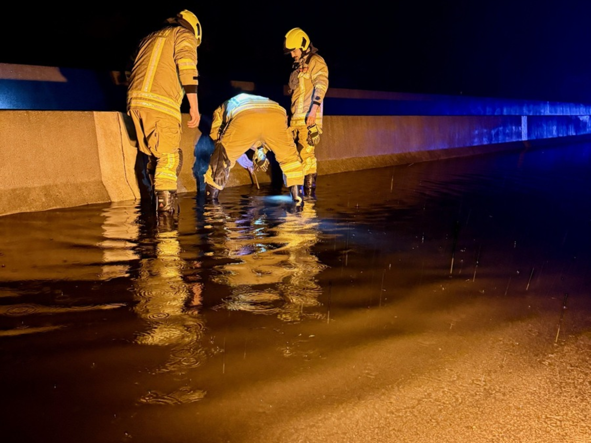 Ratingen - In den frühen Morgenstunden des 19. April wurde die Feuerwehr Ratingen um 03:08 Uhr zu einem Verkehrsunfall auf der Bundesautobahn 3 in Fahrtrichtung Köln alarmiert. Die Unfallstelle lag zwischen dem Autobahnkreuz Breitscheid und dem Autobahnkreuz Ratingen-Ost. Erste Meldungen berichteten von einer eingeklemmten Person, was sich beim Eintreffen der Einsatzkräfte glücklicherweise nicht bestätigte. Zwei PKW waren beteiligt, deren Trümmer sich über rund 200 Meter verteilten. Zusätzlich hatte sich auf der linken Fahrspur Regenwasser in etwa 15 Zentimetern Höhe auf einer Länge von circa 120 Metern angesammelt. Besondere Gefahr ging von einem herausgerissenen Fahrzeugrad aus, das mehrere hundert Meter über die Fahrbahn geschleudert wurde. Die Feuerwehr sicherte die Unfallstelle gemeinsam mit der Polizei ab und stellte den Brandschutz sicher. Auslaufende Betriebsstoffe wurden aufgenommen. Um die Wasseransammlung zu beseitigen, befreiten die Einsatzkräfte sieben verstopfte Wasserabläufe von Morast, sodass das Wasser abfließen konnte. Der Rettungsdienst versorgte zwei leicht verletzte Personen, die an der Einsatzstelle verbleiben konnten. Eine Feuerwehrkraft zog sich während der Maßnahmen eine leichte Handverletzung zu. Beide Fahrzeuge waren nicht mehr fahrbereit und wurden durch ein Bergeunternehmen abgeschleppt. Der Einsatz dauerte von 03:08 bis etwa 05:30 Uhr. Anschließend übergab die Feuerwehr die Einsatzstelle an die Autobahnpolizei. Im Einsatz waren Kräfte der Berufsfeuerwehr Ratingen von beiden Standorten, der Führungsdienst, Einheiten der Freiwilligen Feuerwehr Homberg und Mitte sowie der Rettungsdienst der Städte Ratingen und Heiligenhaus mit zwei Rettungswagen und einem Notarzt des Kreises Mettmann. Die Autobahnpolizei war ebenfalls vor Ort. Zur Schadenshöhe liegen keine Angaben vor.