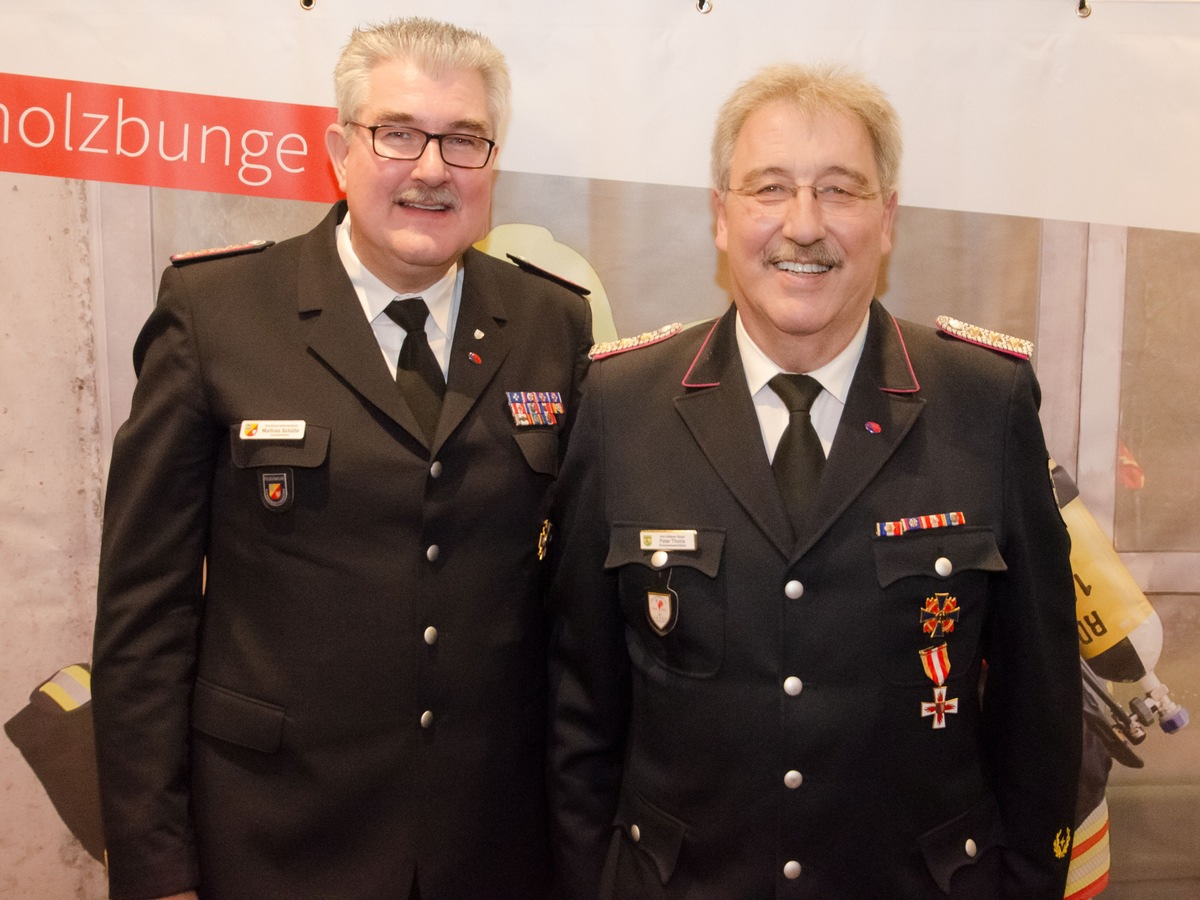 Peter Thoms - 50 Jahre Feuerwehr Zugehörigkeit Rudi Bening - 60 Jahre Feuerwehr Zugehörigkeit