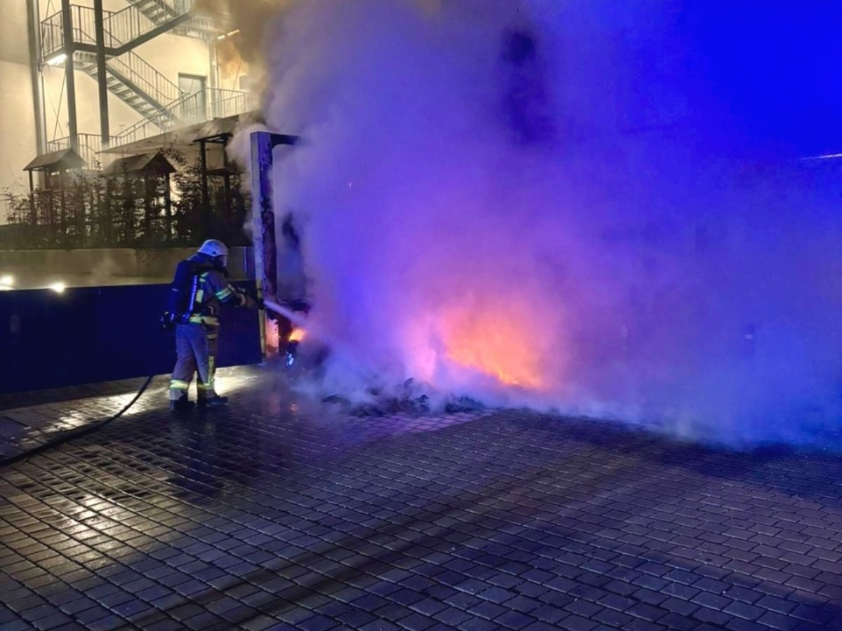 26.11.2025 - 08:10:47 | presseportal.deBeim Eintreffen der ersten Kräfte standen drei Großmülltonnen in Flammen. Diese befanden sich in direkter Wandnähe eines Gebäudekomplexes, sodass die Hitzeentwicklung auf die Fassade einwirkte. Aufgrund der hohen Temperaturen löste die Brandmeldeanlage eines nahegelegenen Ladenlokals aus. In einem angrenzenden Zwischengang setzten zusätzlich mehrere Sprinkler ein, was zu einer Wasserabgabe im betreffenden Bereich führte.