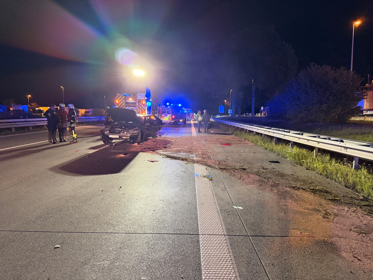 A1 - Am 30. September 2025 um 20:47 Uhr wurden die Feuerwehren aus Elsdorf, Gyhum und Wehldorf zu einem Verkehrsunfall auf der BAB 1 in Fahrtrichtung Hamburg zwischen den Anschlussstellen Elsdorf und Sittensen alarmiert. Laut Angaben der Polizei fuhr ein VW Golf auf einen älteren Citroën auf, woraufhin beide Fahrzeuge in die Leitplanke und anschließend wieder auf die Fahrbahn geschleudert wurden.