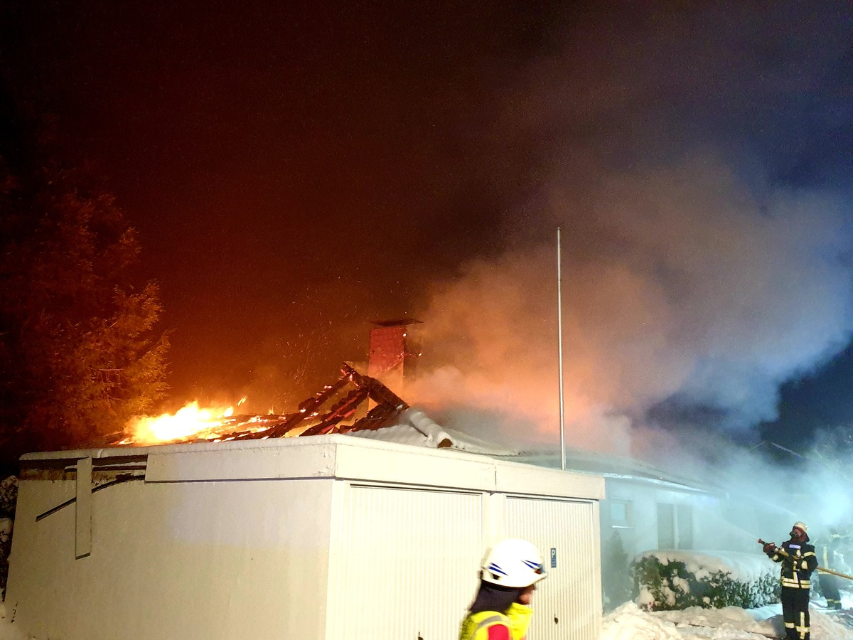 Schalksmühle - In der Nacht zum 1. Dezember wurde der Löschzug II der Freiwilligen Feuerwehr Schalksmühle (Löschgruppen Hülscheid und Winkeln) gegen Mitternacht zu einem Feuer in einem Gebäude in der Straße "Im Eichholz" alarmiert. Beim Eintreffen der Feuerwehr an der Einsatzstelle brannte der Dachstuhl des betroffenen Gebäudes bereits in voller Ausdehnung. Personen befanden sich nicht im Haus. Die zunächst alleine alarmierte Löschgruppe Hülscheid ließ daraufhin die Löschgruppe Winkeln, sowie eine Drehleiter nachalarmieren. Sofort gingen Angriffstrupps zur Brandbekämpfung vor. Insgesamt waren vier Angriffstrupps sowie die Drehleiter der Freiwilligen Feuerwehr Lüdenscheid-Brügge mit dem Löschen des Feuers beschäftigt. Durch den gezielten Löschangriff brachten die Einsatzkräfte den Brand schnell unter Kontrolle. Nach weniger als einer Stunde waren keinen Flammen mehr sichtbar. Dennoch zog sich der Einsatz weitere drei Stunden hin: zum Ablöschen der letzten Glutnester wurden zunächst, soweit noch vorhanden, Dachpfannen mit Einreißhaken entfernt, um schließlich Löschschaum auf die Brandstelle aufbringen zu können. Obwohl die Feuerwehrleute einen schnellen Löacherfolg erzielen konnten, ist das Gebäude dennoch nicht mehr nutzbar. Über die Höhe des Schadens und über die Brandursache kann die Feuerwehr keine Angaben machen. Neben den Löschgruppen Hülscheid und Winkeln war ebenfalls das DRK Schalksmühle ,sowie ein Rettungswagen, ein Notarzteinsatzfahrzeug, der Energieversorger und die Polizei vor Ort. Die Löschgruppe Dahlerbrück unterstützte zum Schluss noch mit ihrem Gerätewagen-Logistik an der Einsatzstelle.
