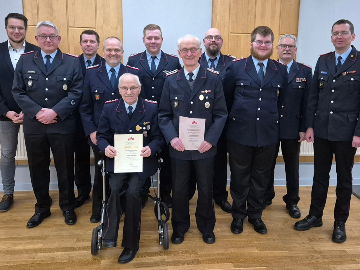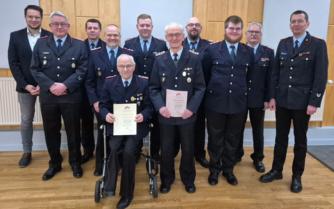 Der stellv. Kreisbrandmeister Willi Lucan überbrachte herzliche Grüße des Kreisbrandmeisters Volker Prüsse und ging in seinem Bericht auf das gesamte Einsatz- und Ausbildungsgeschehen sowie Veranstaltungen und den Mitgliederbestand seitens der Kreisfeuerwehr Celle ein. In den 74 Feuerwehen des LK Celle mussten im vergangene Jahr 1432 Einsätze abgearbeitet werden. Ein deutlicher Rückgang zu 2023, aber immer noch ein sehr hohes Niveau, so Lucan. Im Anschluss an seinen ausführlichen Bericht konnte Lucan noch zwei Ehrungen durchführen. Hierzu bat er alle Anwesenden sich von ihren Plätzen zu erhaben. Dem 1.Hauptfeuerwehrmann Rudi Nehrig wurde das Abzeichen für 50-jährige Mitgliedschaft und dem 1.Hauptfeuerwehrmann Otto Hoburg das Abzeichen für 60-jährige Mitgliedschaft in der Feuerwehr verliehen. Im Anschluss folgten noch Grüße der Altersabteilung, des Ortsbürgermeisters sowie Kurzberichte einiger Funktioner der Feuerwehr Baven.