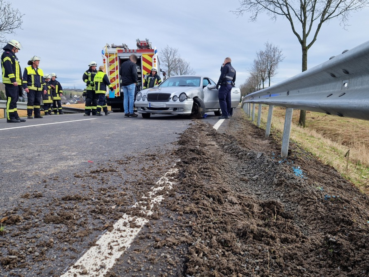 FW VG Westerburg: Junger Fahrer kracht auf Bundesstraße 255 in Leitplanke - Foto: presseportal.de