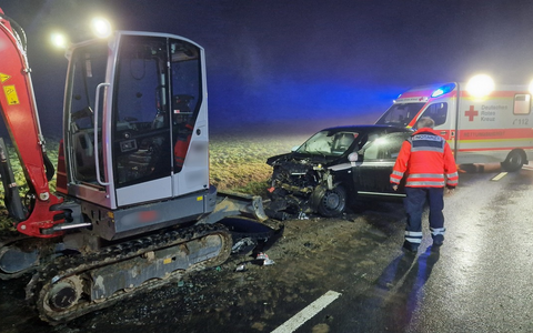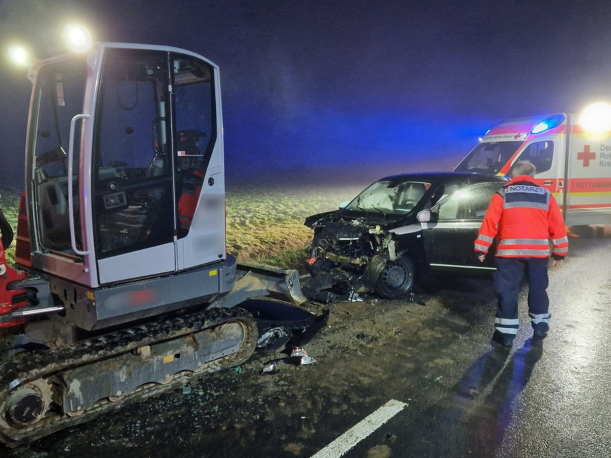 FW VG Westerburg: PKW fÀhrt auf Raupenbagger auf - Drei Personen verletzt - Foto: presseportal.de