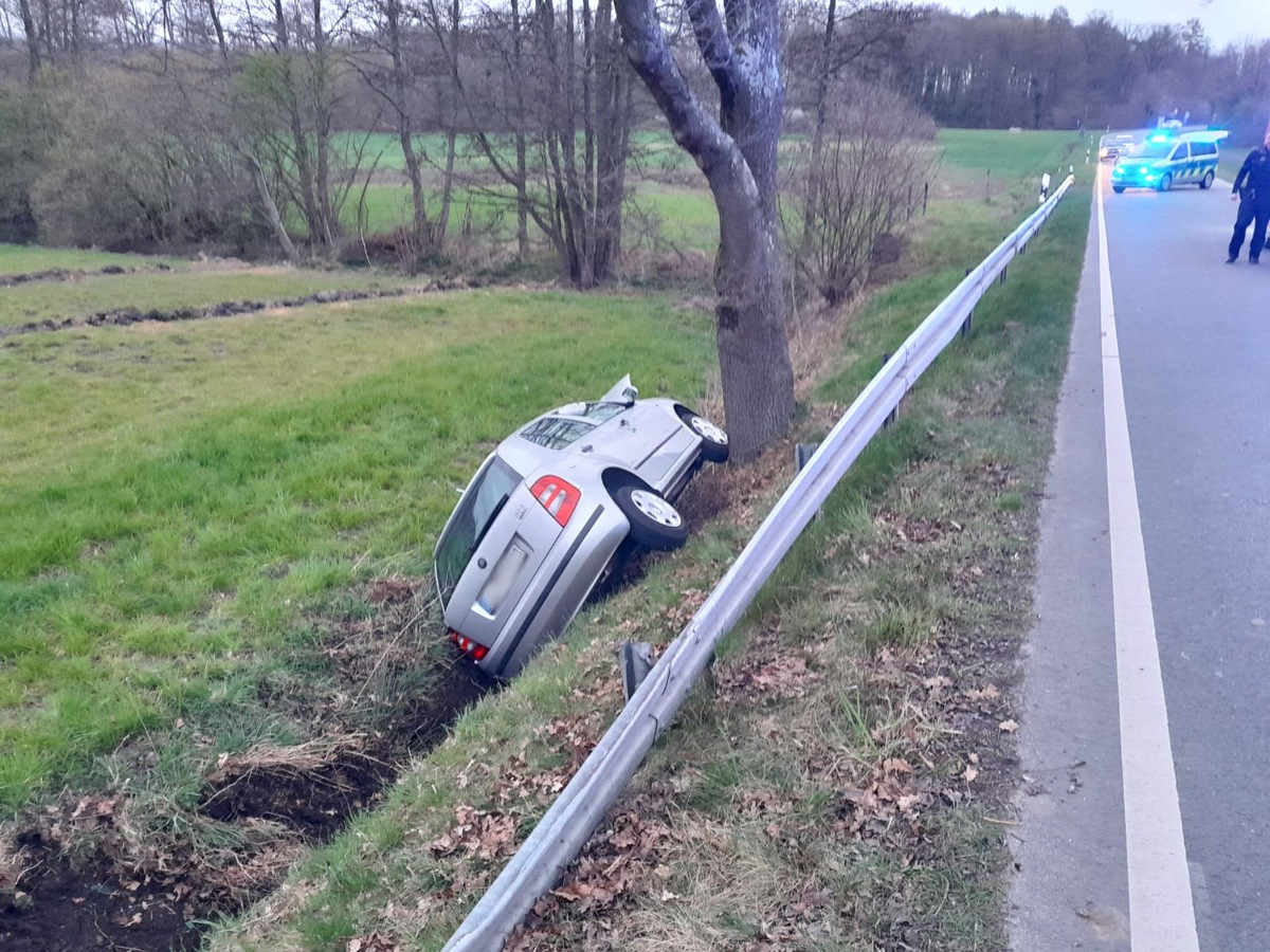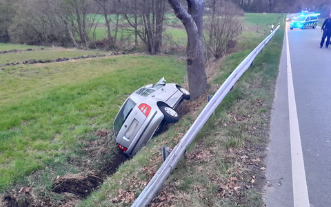 31.03.2025 - 21:45:00 | presseportal.deHinter einer Kurve nahe der Einmündung in die Langerstraße war ein PKW von der Fahrbahn abgekommen und lag im Straßengraben auf der Fahrerseite. Der Fahrer war zwar nicht eingeklemmt, hatte sich aber am Arm verletzt und konnte das Fahrzeug nicht selbstständig verlassen. Die Feuerwehr half dem Verletzten in Abstimmung mit der ebenfalls alarmierten Notärztin aus dem Fahrzeug und führte ihn dem Rettungsdienst zu. Zudem stellte die Feuerwehr den Brandschutz sicher, klemmte die Fahrzeugbatterie ab und kontrollierte den Wagen auf auslaufende Betriebsstoffe. Im Anschluss übergab sie die Einsatzstelle an die Polizei. Diese sicherte den Unfallort bis zur Entfernung des PKW durch ein Abschleppunternehmen. Die Varnhöveler Straße war bis zum Abschleppen des Wagens im Bereich der Unfallstelle voll gesperrt.