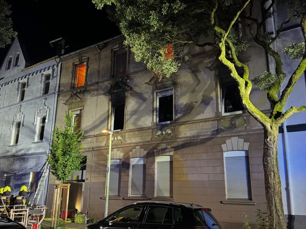 Einheiten der Berufsfeuerwehr und der Freiwilligen Feuerwehr sind heute Nacht um 02:52 Uhr zu einem Brand mit "Menschenleben in Gefahr" in die Steinfurthstraße ausgerückt. Beim Eintreffen der ersten Einheiten schlugen bereits Flammen auf der Gebäuderückseite aus einem Fenster im 1. Obergeschoss. Eine Person an der Straßenseite stand am Fenster und wurde mittels einer Steckleiter gerettet.