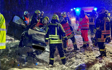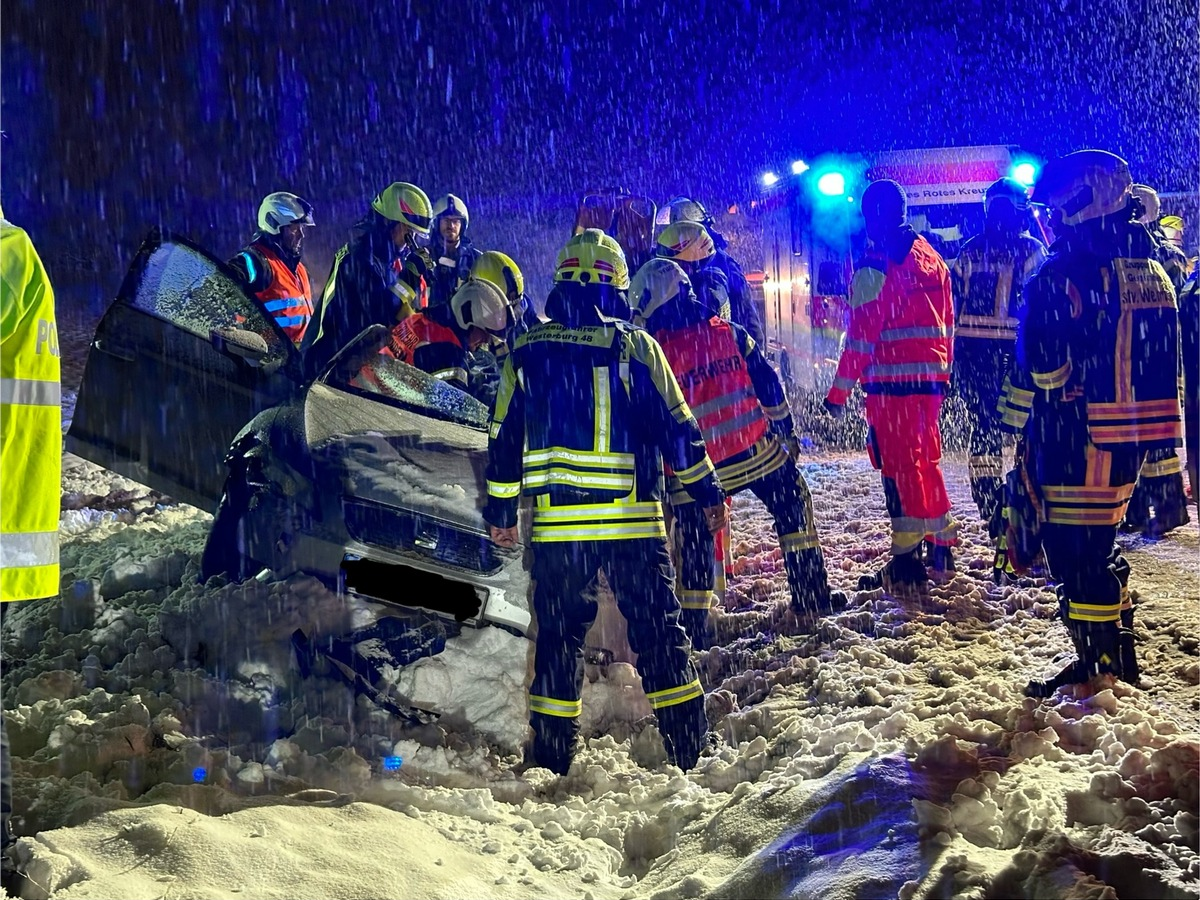 Gemünden/WW - Zu einem Verkehrsunfall mit eingeklemmter Person mussten am Montag, den 27.11.2023 um 16:59 Uhr im dichten Schneetreiben die Feuerwehren aus Gemünden, Winnen und Westerburg auf die Landesstraße 288, Gemünden Richtung Langendernbach ausrücken. Die ersteintreffenden Einsatzkräfte stellten vor Ort fest, dass es sich um einen Verkehrsunfall mit zwei beteiligten PKW und einem, mit Gasflaschen beladenen, LKW handelte. Ein PKW befand sich im Graben, der Andere vor dem LKW auf der Straße. Die Fahrerin des im Graben befindlichen Fahrzeugs war in ihrem Gefährt eingeklemmt. Nach der Erstversorgung durch den mitalarmierten Rettungsdienst und Notarzt wurde sie von der Feuerwehr Westerburg mittels hydraulischem Rettungsgerät befreit und nach weiterer Versorgung vor Ort mit einem Rettungswagen in ein Krankenhaus transportiert. Über den Grad der Verletzungen ist nichts bekannt. Die Fahrerin des zweiten Fahrzeugs und der LKW Fahrer blieben unverletzt. Auch die Ladung des LKW nahm keinen Schaden. Während der Rettungs- und Bergungsarbeiten wurde die L-288 von den Wehren aus Winnen, Gemünden und der nachalarmierten Wehr aus Langendernbach für den Verkehr voll gesperrt.