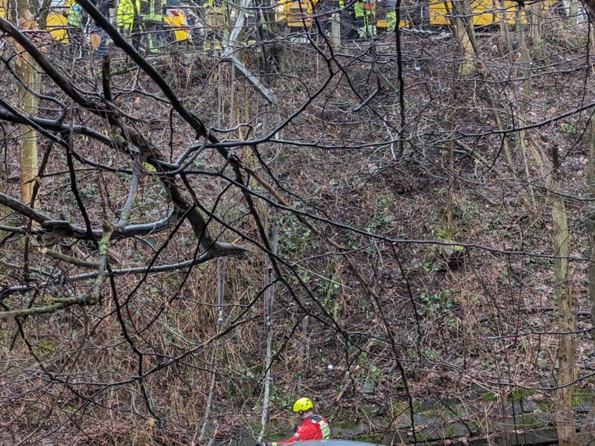 Gevelsberg - Am Mittwochnachmittag wurde die Feuerwehr Gevelsberg zu einem ungewöhnlichen Einsatz in der Milsper Straße gerufen. Dort war ein PKW an der dortigen Böschung zwanzig Meter hinab in das Flußbett der Ennepe gedriftet. Bereits beim Eintreffen der ersten Einsatzkräfte war der Fahrer des PKW von anwesenden Passanten aus dem Auto befreit und befand sich in halber Höhe der Böschung. Umgehend wurde der Fahrer mit einer sogenannten Schleifkorbtrage aus dem Hang gerettet und vom anwesenden Rettungsdienst medizinisch betreut und anschließend in eine umliegende Klinik transportiert. Nach der Rettung des Fahrers wurde in Zusammenarbeit mit einem Abschleppunternehmen das verunfallte Auto aus der Ennepe geborgen. Während der Bergung des PKW wurden zusätzlich Ölsperren in die Ennepe eingebracht um eine Gewässerverunreinigung durch eventuell auslaufende Betriebsstoffe zu verhindern. Im Einsatz waren neben den Kräften der Hauptwache auch der Löschzug Mitte und die Strömungsretter der Gevelsberger Feuerwehr. Die Einsatzstelle konnte im Anschluß nach einer zweistündigen Einsatzzeit der Polizei für weitere Ermittlungen übergeben werden.