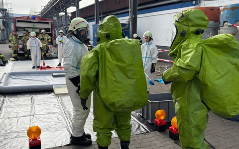 Feuerwehr Goch: Gefahrgutübung bei RCN-Chemie: 40 Feuerwehr-Einsatzkräfte vor Ort